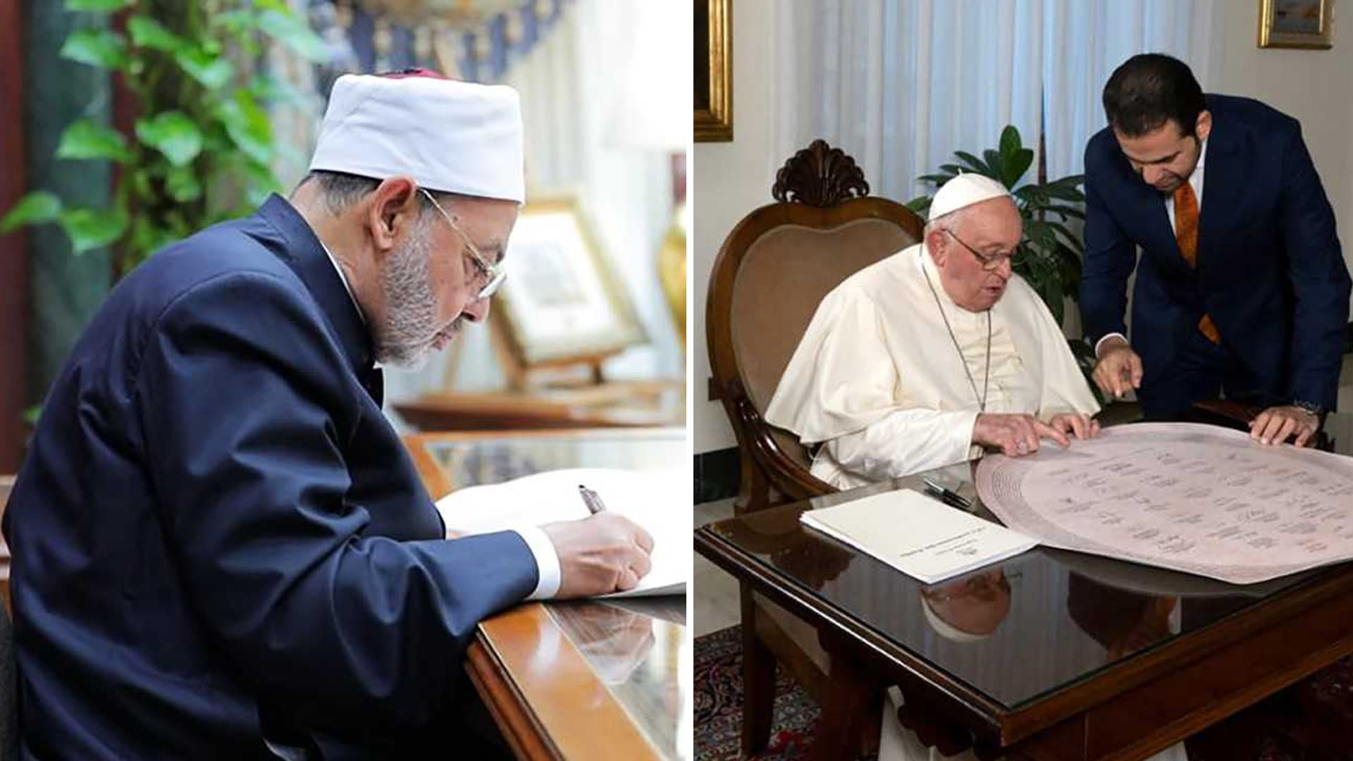 وقع البابا فرنسيس بابا الكنيسة الكاثوليكية، والإمام الأكبر الدكتور أحمد الطيب شيخ الأزهر الشريف، اليوم الأحد، إعلاناً لدعم العمل المناخي العاجل، وذلك على هامش مشاركتهما عبر تقنيةِ الفيديو في افتتاح جناح الأديان في مؤتمر الأطراف COP28 في مدينة إكسبو دبي.