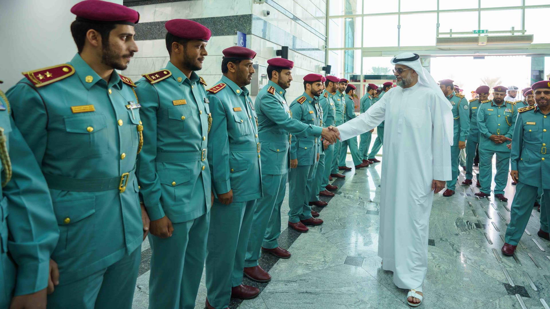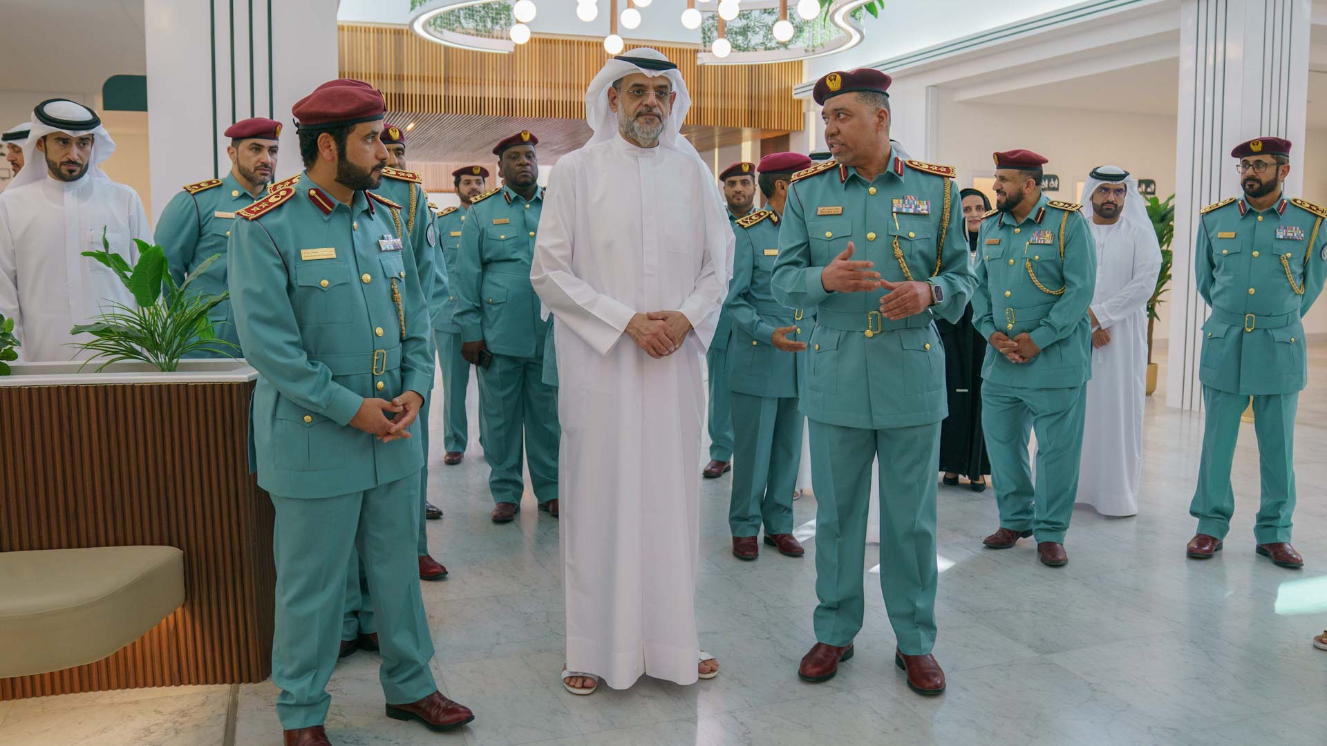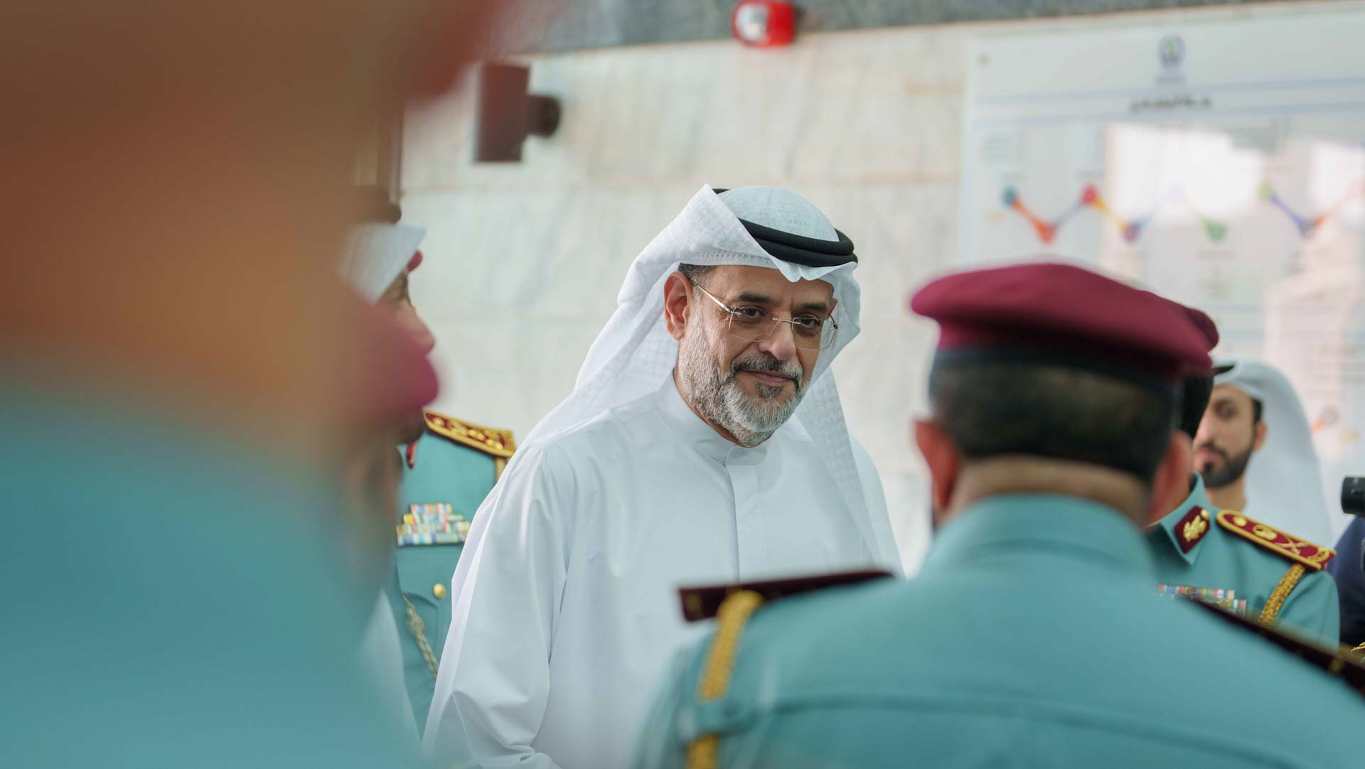 رافق سمو ولي عهد الشارقة خلال الجولة كل من: اللواء ركن خليفة حارب الخييلي وكيل وزارة الداخلية، واللواء سيف الزري الشامسي قائد عام شرطة الشارقة، ومحمد بن طليعة رئيس الخدمات الحكومية في مجلس الوزراء، وعدد من كبار الضباط وضباط الصف والأفراد في وزارة الداخلية والقيادة العامة لشرطة الشارقة.