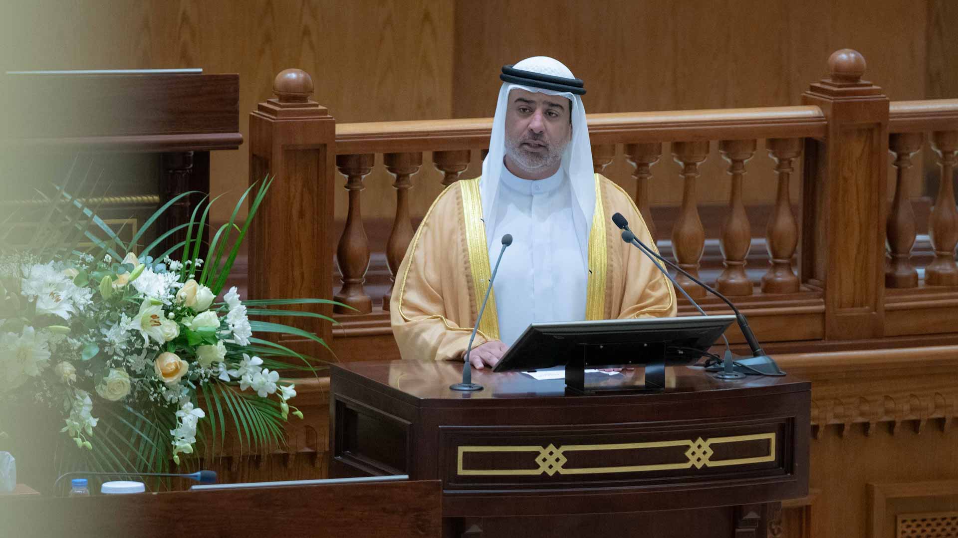 وأضاف معاليه" :إن لافتتاح سموكم الكريم لأعمال دور الانعقاد العادي الأول من الفصل التشريعي الحادي عشر يعكس التفاعل الوطني الكبير والثقة التي يمنحها المواطنون والمواطنات لهذا الصرح البرلماني، وإن هذه الثقة والتفاني يعتبران محفزين قويين للمجلس للاستمرار في تحقيق التقدم وخدمة الوطن".