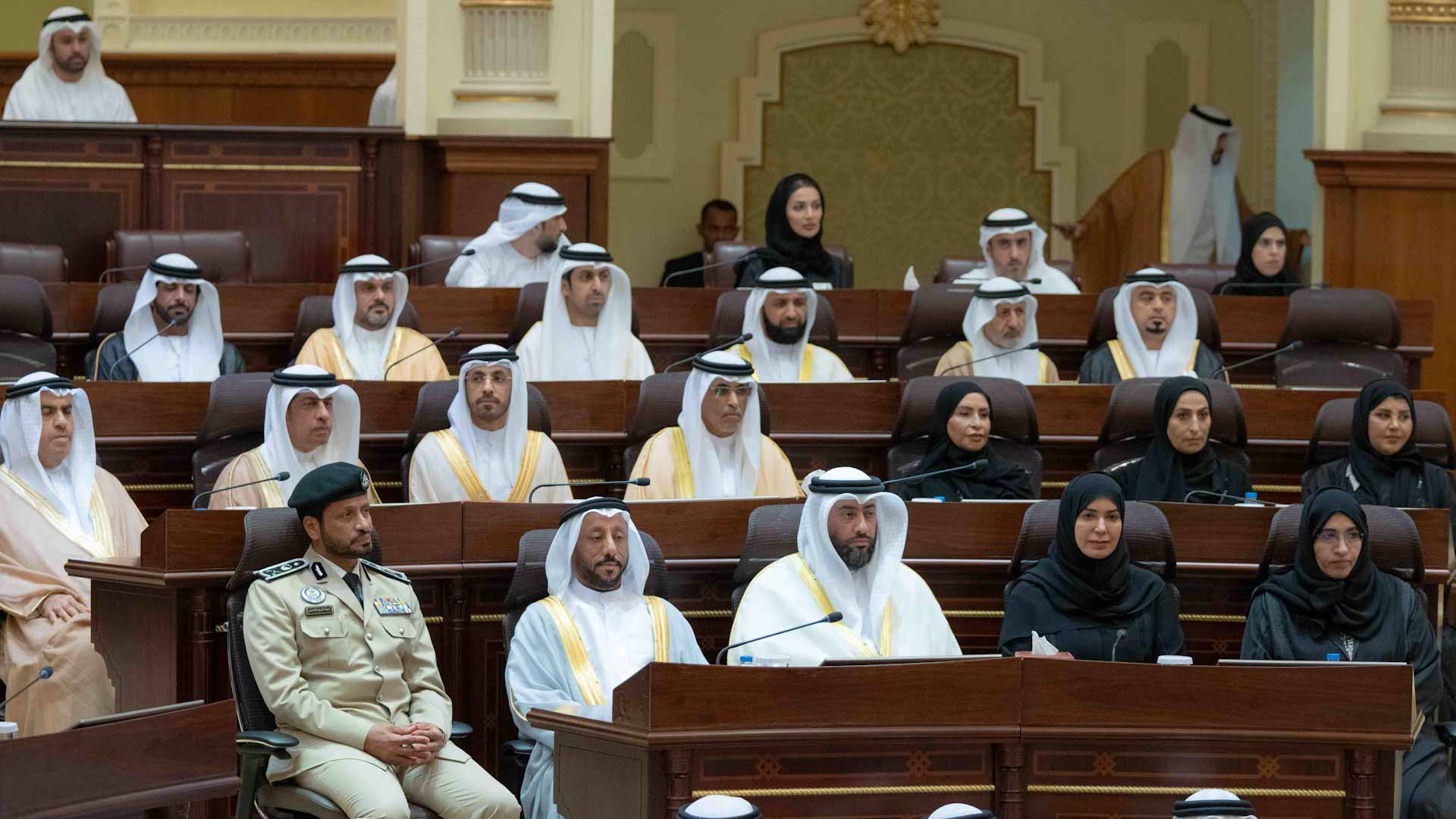 بعد ذلك توجه صاحب السمو حاكم الشارقة والحضور إلى قاعة المجلس الاستشاري للبدء بانعقاد الجلسة والتي استُهلت مراسمه بالسلام الوطني لدولة الإمارات العربية المتحدة، عقبه تلاوة آيات من الذكر الحكيم، ثم أعلن صاحب السمو حاكم الشارقة عن افتتاح دور الانعقاد العادي الأول من الفصل التشريعي الحادي عشر للمجلس الاستشاري لإمارة الشارقة، متمنياً للمجلس التوفيق والسداد في فترة انعقاده بما يخدم مصلحة الوطن والإمارة وتحقيق الرفاهية للمواطنين والقاطنين على أرض الشارقة.