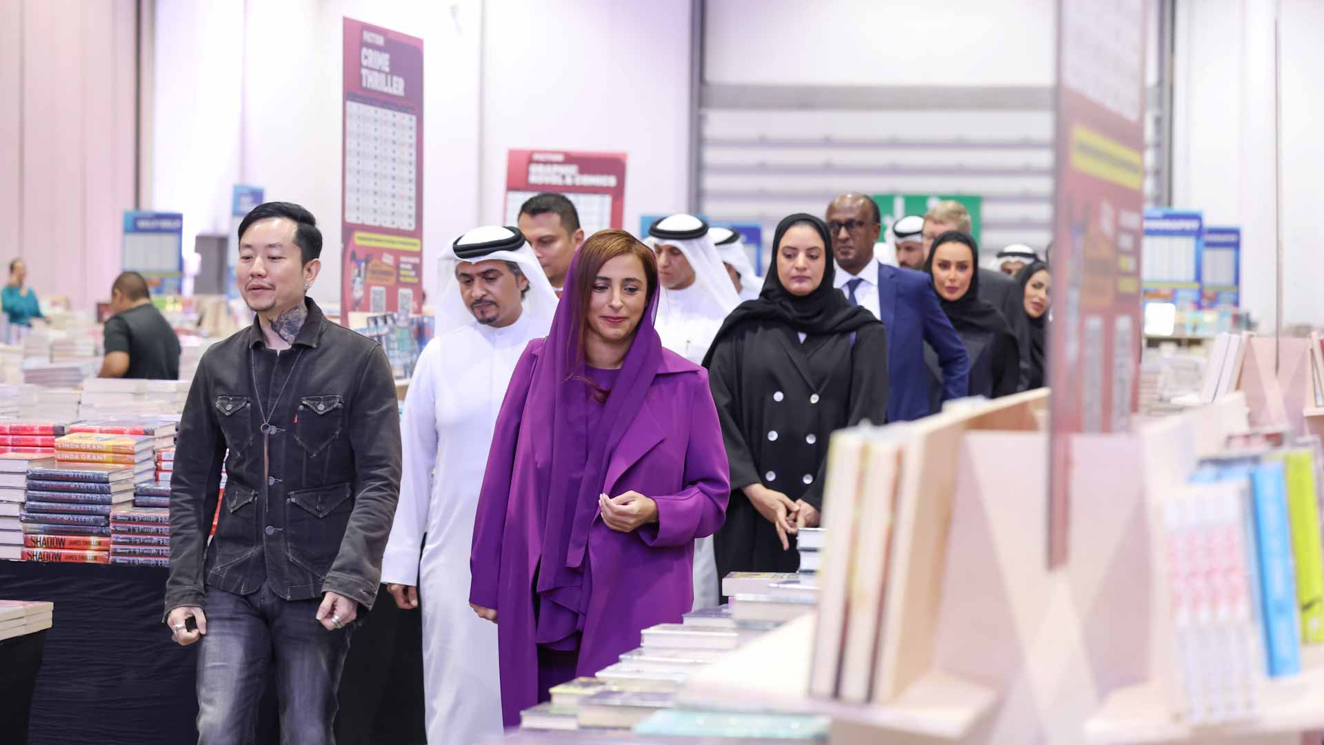 حيث تفقدت الشيخة بدور القاسمي أقسام وأجنحة المعرض، واطلعت على الإصدارات، والتقت عدداً من الناشرين والعارضين.