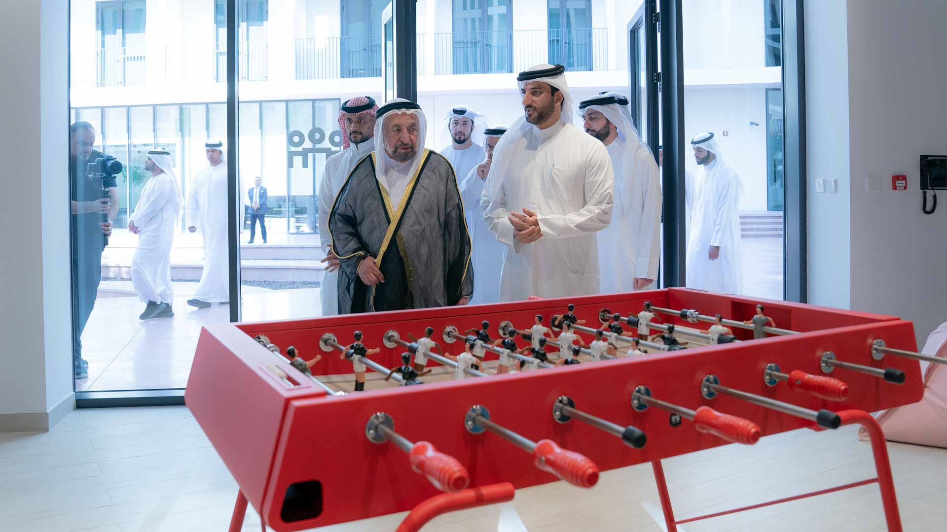 وتجول صاحب السمو حاكم الشارقة في مجمع "نست" السكني والمخصص لطلبة الجامعات، مطلعاً سموه على الوحدات السكنية التي يضمها المجمع، والخدمات التي يقدمها لساكنيه، حيث يضم 12 مجمعاً سكني، ويوفر 2400 وحدة سكنية يراعى فيها خصوصية السكان من حيث فصل سكن الطلاب عن الطالبات.