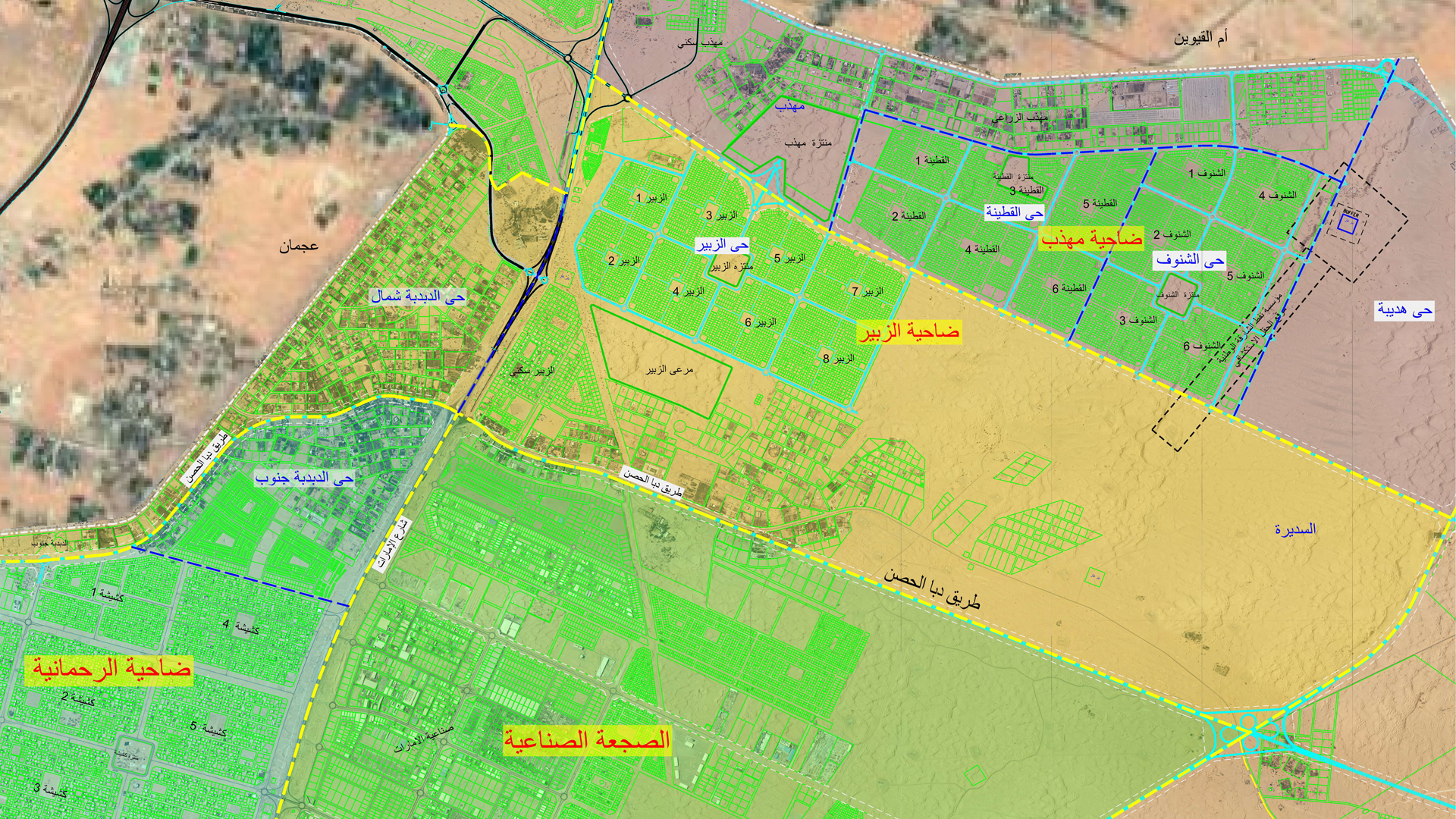 اعتمد صاحب السمو الشيخ الدكتور سلطان بن محمد القاسمي عضو المجلس الأعلى حاكم الشارقة، التقسيمات الإدارية الجديدة لضاحيتي مهذب والزبير، وفقاً للتعديلات التالية: تقسيم منطقة بساتين الزبير إلى "حي الدبدبة شمال"، و"حي الدبدبة جنوب"، وأضيف حي "القطينة" إلى ضاحية "مهذب"، لتشمل "ضاحية مهذب" أحياء "القطينة، الشنوف، هديبة".