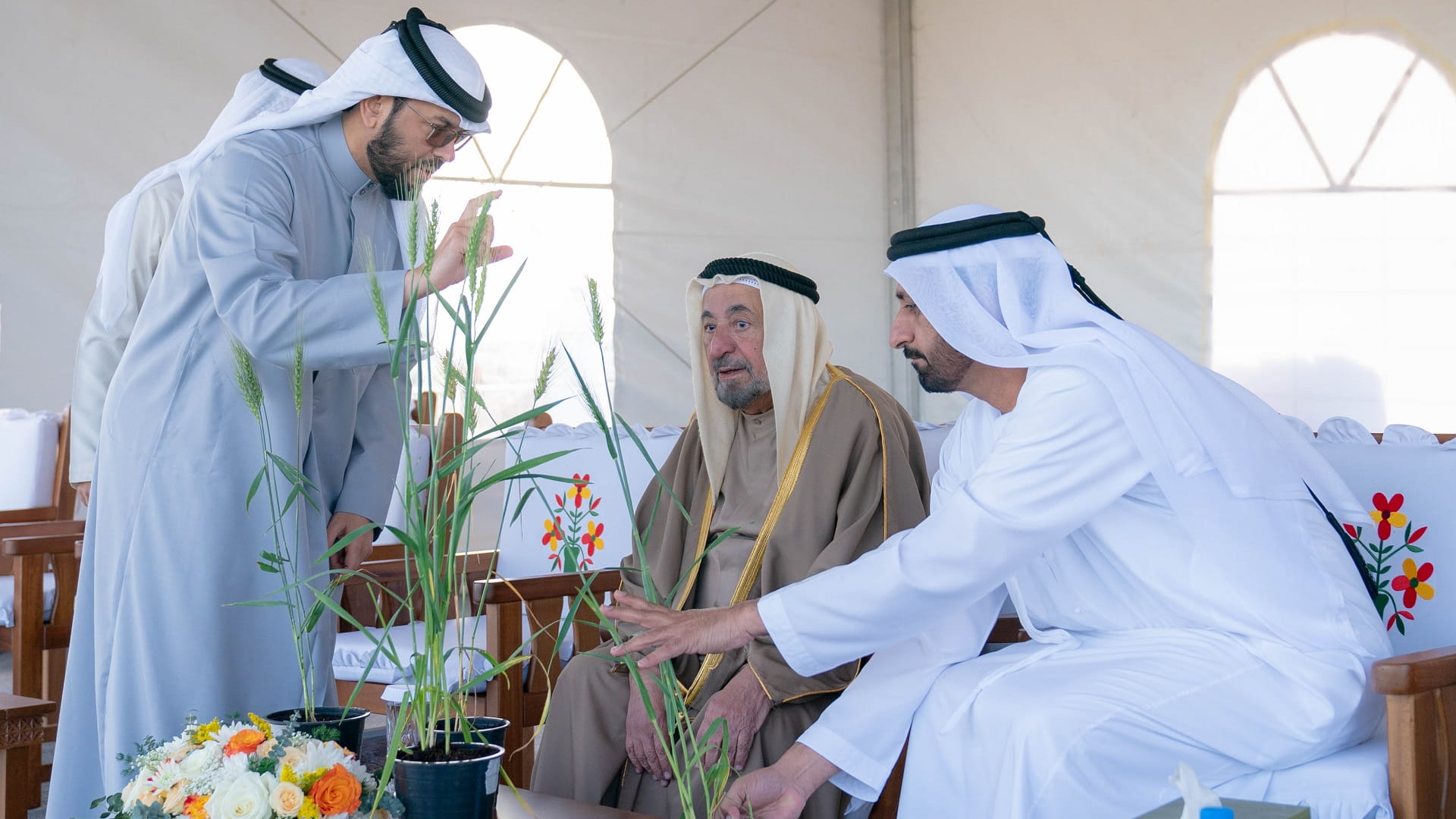 كما اطلع صاحب السمو حاكم الشارقة، على بعض أصناف القمح المزروعة، مستمعاً إلى شرح حول مراحل نموها ونتائج التجارب والدراسات التي تجرى عليها للاستفادة في تطوير العمل الزراعي وضمان الإنتاج الصحي والسليم الغني بالقيمة الغذائية.