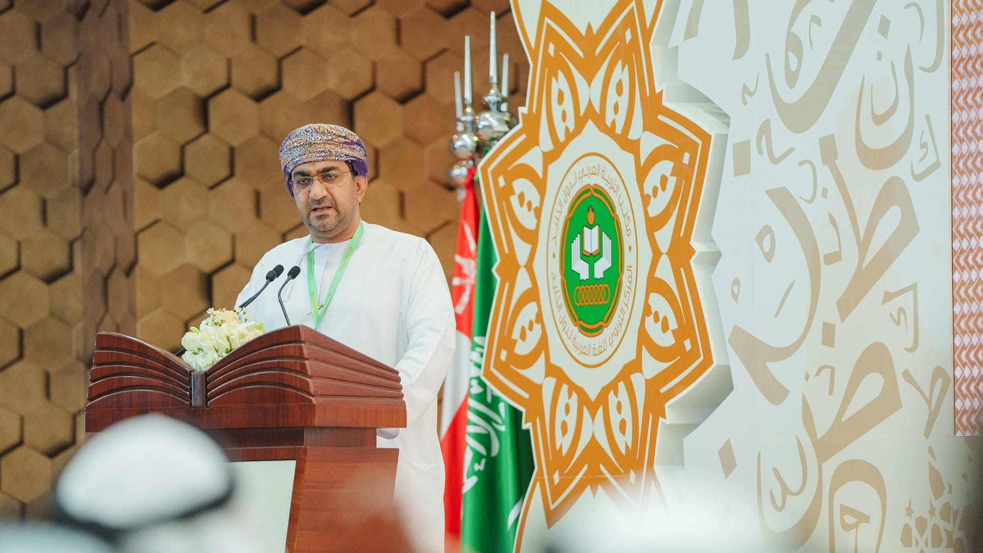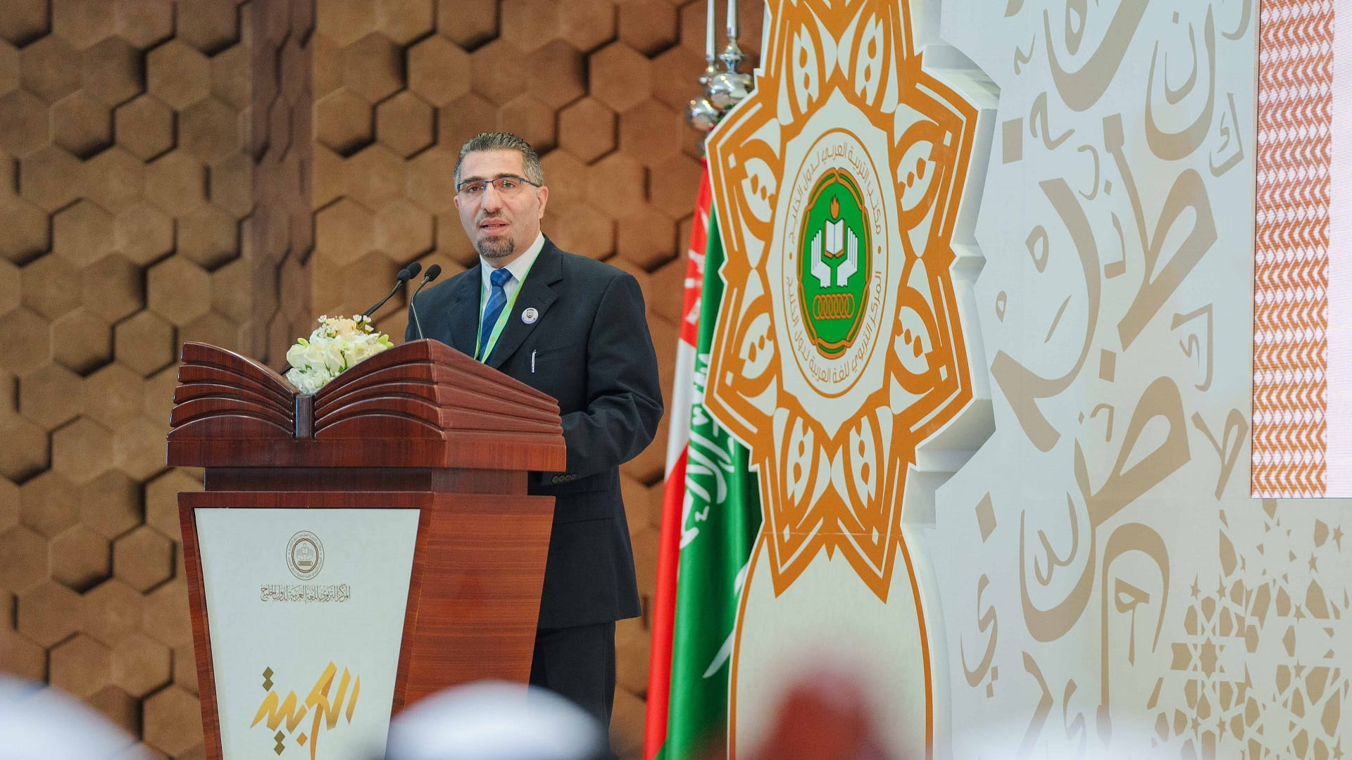 وتناول الحمادي في كلمته ما يسعى إليه المؤتمر، الذي يعد أحد البرامج المعتمدة للمركز التربوي للغة العربية لدول الخليج للدورة 2023/2024م، من مناقشة القضايا والدراسات والأبحاث وأفضل الممارسات والتجارب العلمية والعملية ذات الصلة بواقع تعليم اللغة العربية وتعلمها، والتعريف بالجهود الفردية والمؤسساتية ودورها في تطوير تعليم اللغة العربية وتعلمها، والاطلاع على أحدث المستجدات والمبادرات المبدعة والتقارير والتجارب الناجحة.