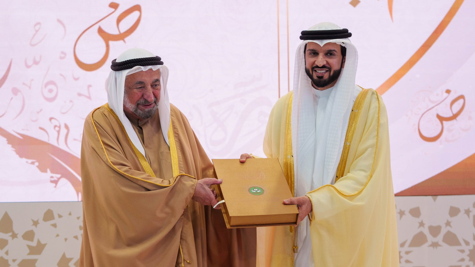 وتفضل صاحب السمو حاكم الشارقة في ختام حفل الافتتاح بتكريم الجهات المشاركة في التنظيم واللجنة العلمية للمؤتمر وعدد من الخبراء المشاركين في الجلسة الافتتاحية، إلى جانب الفائزين بالبحوث المميزة في المؤتمر، كما تفضل سموه بتسلم هدية تذكارية من المركز، والنسخة الأولى من إصدار مؤتمر اللغة العربية الدولي السابع الذي يتكون من 4 مجلدات تتضمن البحوث المحكمة والمشاركة في المؤتمر.