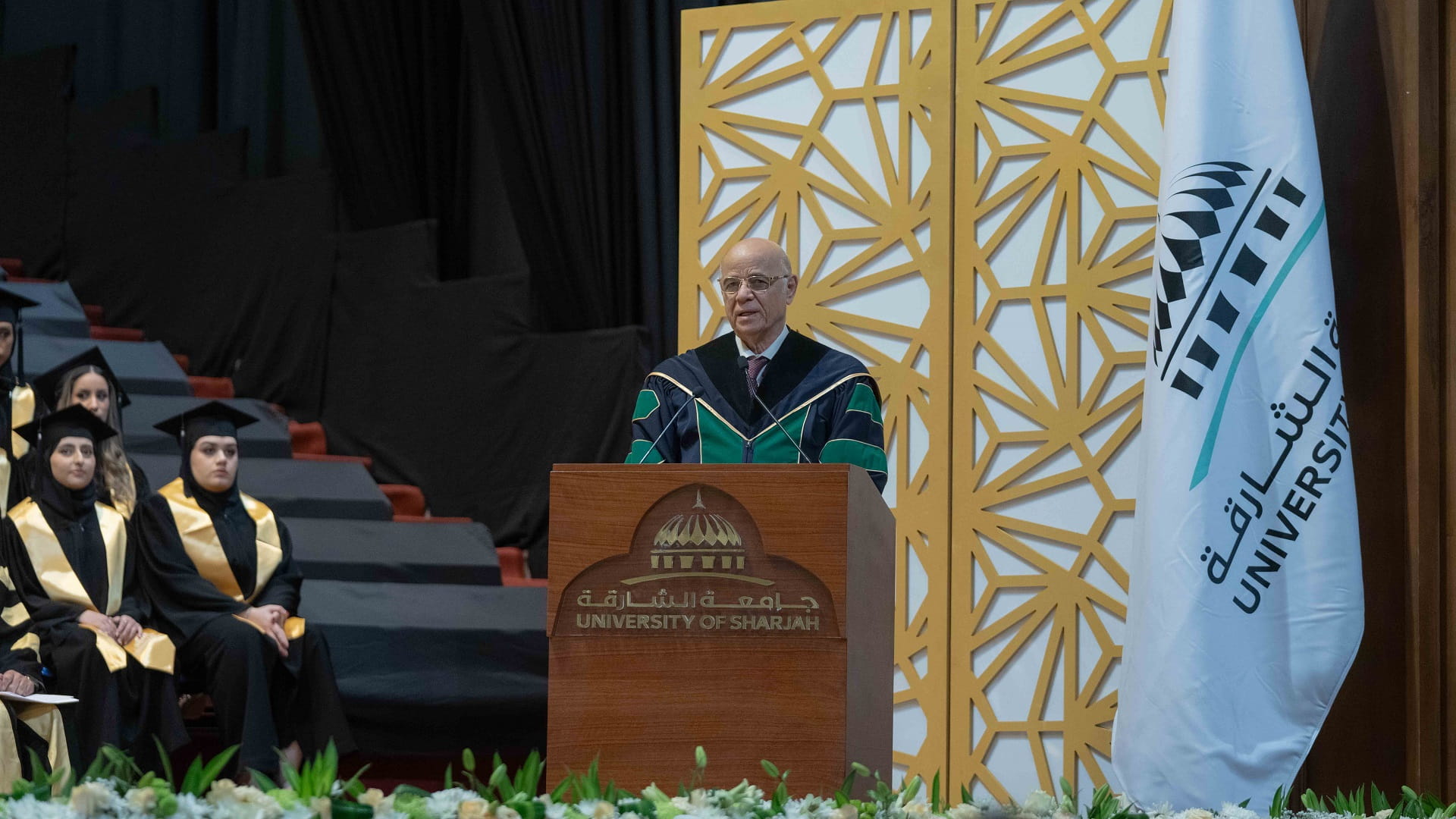وقال سموه: إذا كان إرضاء الناس غايةٌ لا تُدرك فإرضاء الذات هدفٌ لا يُترك، ونحن في جامعة الشارقة نسعى لإرضاء الذات بادراك النجاح تلو النجاح، فهو سبيلنا وغايتنا ولا نتركُ فرصة من فرص النجاح إلا سعينا إليها، هكذا علمنا صاحب السمو الشيخ الدكتور سلطان بن محمد القاسمي، عضو المجلس الأعلى حاكم الشارقة ومؤسس الجامعة، لذا ارتقت جامعتنا في سنوات معدودة إلى أعلى المراتب العلمية وحققت ما حققته غيرها من جامعات في سنوات طوال.