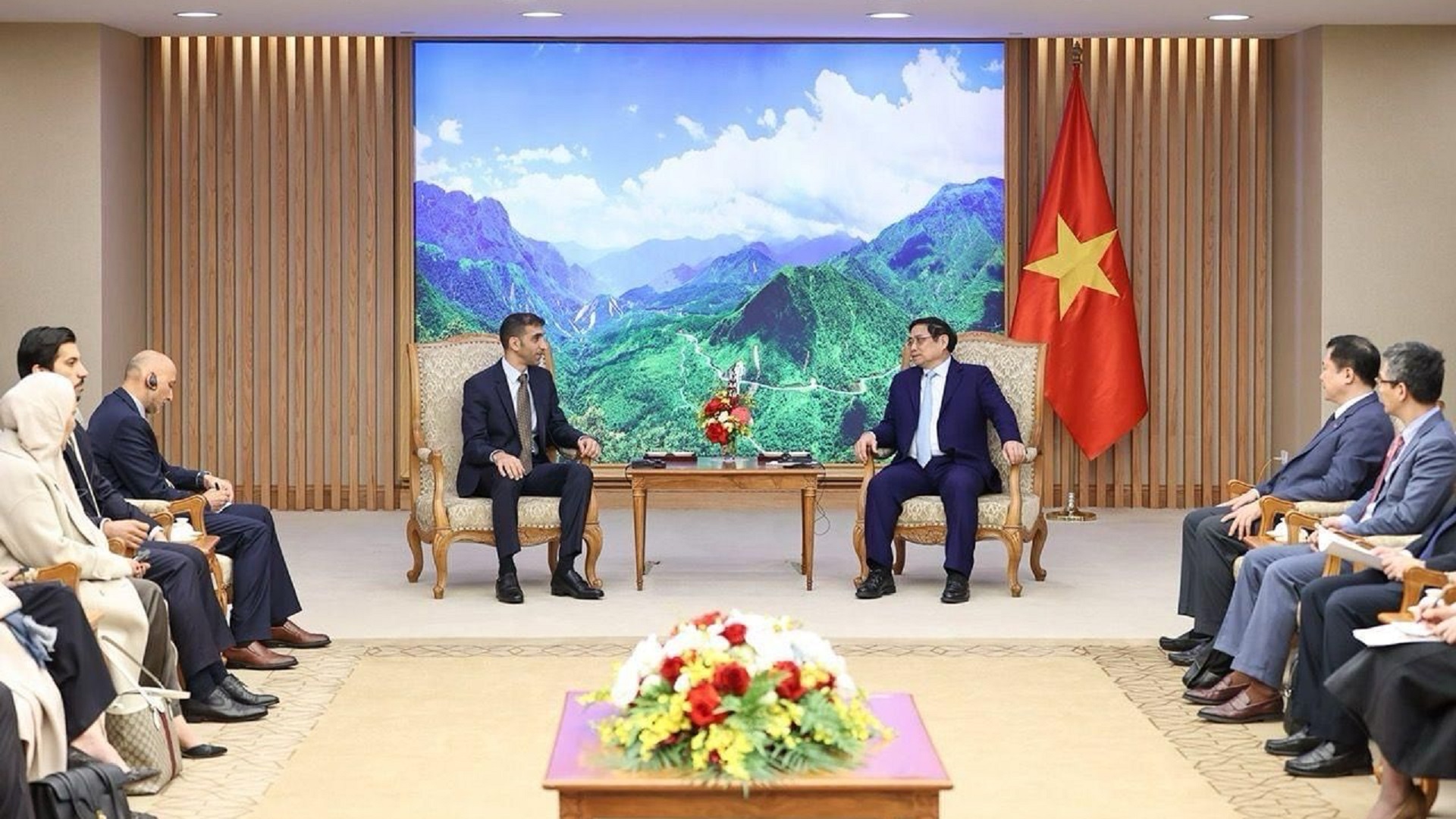 أجرى معالي الدكتور ثاني بن أحمد الزيودي وزير دولة للتجارة الخارجية، الخميس، مباحثات مع رئيس وزراء جمهورية فيتنام، فام مينه تشينه في العاصمة هانوي، تناولت استكشاف فرص التجارة والاستثمار بين البلدين، والبناء على الزخم المتزايد في العلاقات الثنائية.