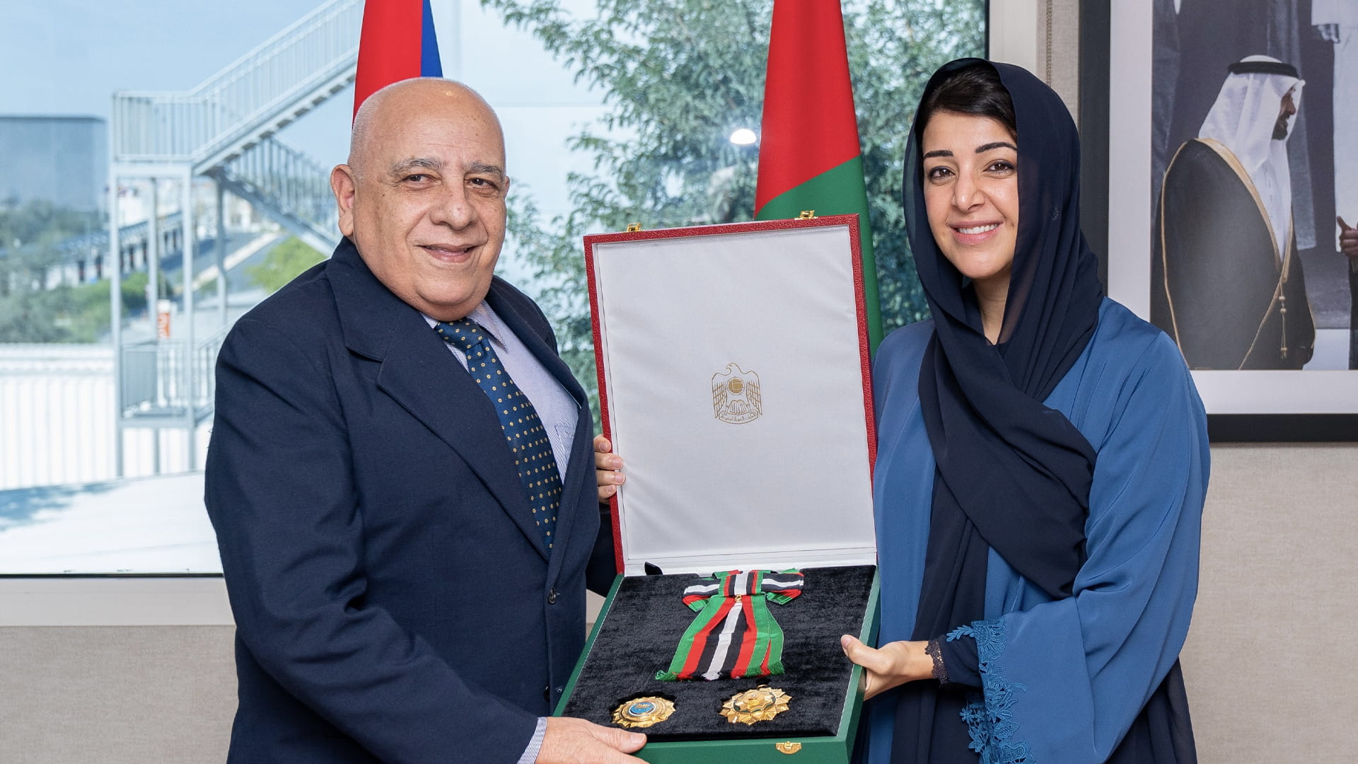 وقلدت معالي ريم بنت إبراهيم الهاشمي وزيرة دولة لشؤون التعاون الدولي، عابد الوسام، خلال اللقاء الذي عقد في مقر وزارة الخارجية، مؤكدة حرص دولة الإمارات، على تعزيز العلاقات مع باربادوس في جميع المجالات.