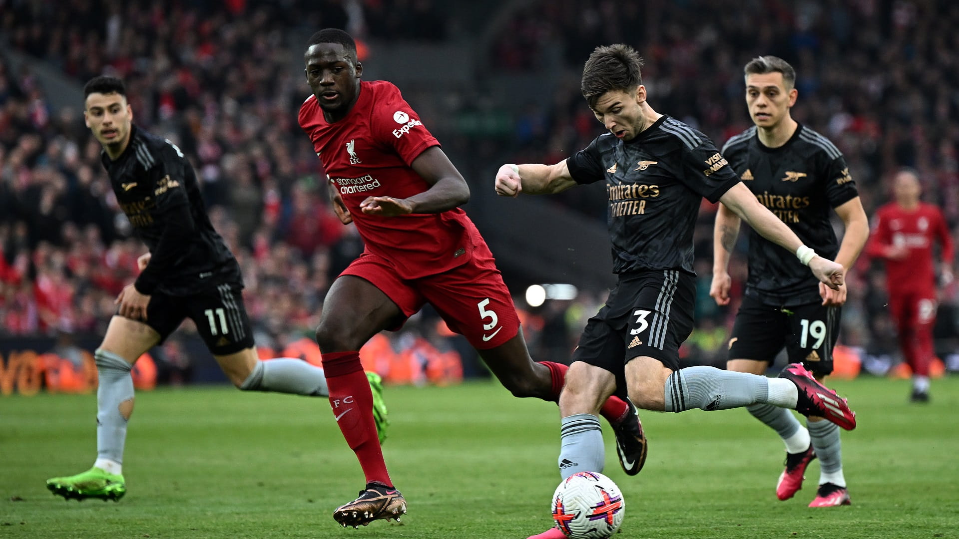 وأكمل ليفربول المباراة بعشرة لاعبين بعد طرد لاعبه إبراهيم كوناتي في الدقيقة 88 بعد تدخل على كاي هافيرتز لاعب أرسنال.