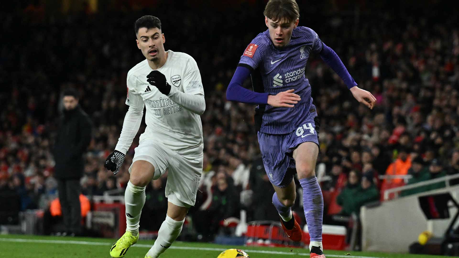 وتقدم أرسنال عن طريق بوكايو ساكا في الدقيقة 14، فيما جاء تعادل ليفربول بهدف عكسي سجله مدافع أرسنال جابرييل ماجاليايش في مرمى فريقه في الدقيقة الثالثة من الوقت المحتسب بدلاً من الضائع للشوط الأول.