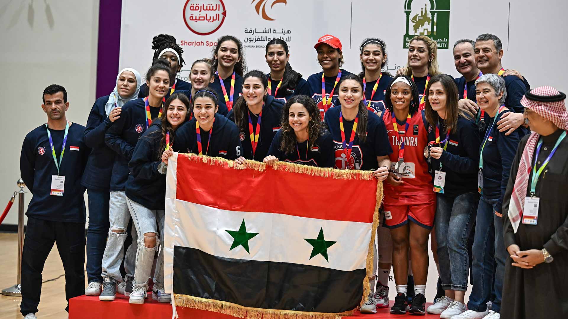 وعقب انتهاء المنافسات، توجه الشيخ خالد بن أحمد القاسمي، رئيس اللجنة المنظمة العليا لدورة الألعاب للأندية العربية للسيدات، بطلات كرة السلة، وتسليم الأهلي البحريني الميداليات البرونزية، والثورة السوري الفضية، والفحيص الأردني الذهبية وكأس النسخة السابعة، وذلك بحضور شخصيات رسمية وقيادات رياضية أبرزهم: الشيخة حياة بنت عبد العزيز آل خليفة رئيسة لجنة تكافؤ الفرص باتحاد اللجان الأولمبية الوطنية العربية، وسعادة عيسى هلال الحزامي رئيس مجلس الشارقة الرياضي، وسعادة عبد العزيز العنزي، الأمين العام لاتحاد اللجان الأولمبية الوطنية العربية، وسعادة فيصل غسال، ممثل إدارة الرياضة والشباب - وزير مفوض في جامعة الدول العربية، وسعادة عبد المحسن فهد الدوسري الأمين العام المساعد السابق للهيئة العامة للرياضة، وحنان المحمود نائب رئيس اللجنة المنظمة العليا لدورة الألعاب للأندية العربية للسيدات، ونورا الشامسي مديرة دورة الألعاب للأندية العربية للسيدات.