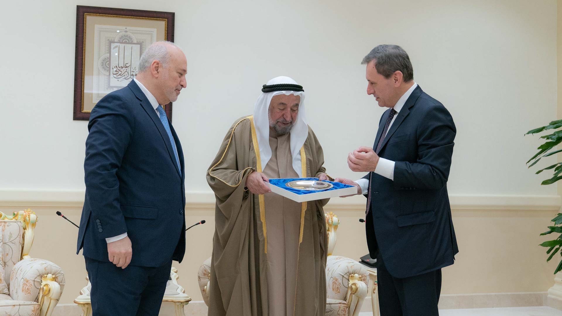 واستمع صاحب السمو حاكم الشارقة من الأمين العام لمؤسسة هامربورغشتال والوفد المرافق له لشرحٍ عن جهود الجامعات النمساوية في تدريس اللغة العربية وبدايتها التاريخية من قبل المؤسسين للجامعات، مشيراً إلى أن جمهورية النمسا تمتلك أكثر من 700 معلم يدرّسون أكثر من 100 ألف طالب وطالبة تعاليم الإسلام واللغة العربية.