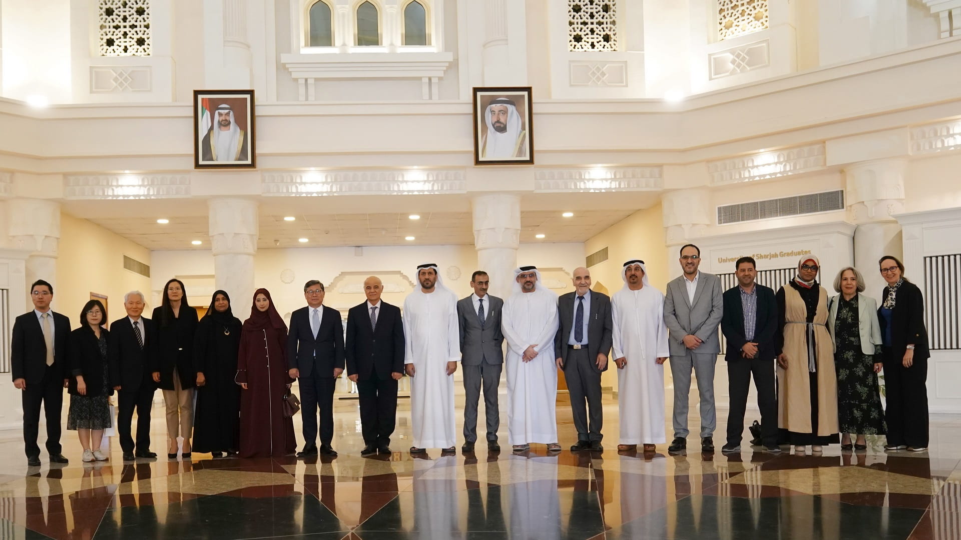 وكان سعادة الأستاذ الدكتور حميد مجول النعيمي قد استهل لقائه مع الوفد الكوري بنقل تحيات سمو الشيخ سلطان بن أحمد بن سلطان القاسمي نائب حاكم الشارقة ورئيس جامعة الشارقة، ليؤكد بعد ذلك حرص جامعة الشارقة على الارتقاء بالبحث العلمي وتعزيز التعاون في المشاريع البحثية المشتركة مع المؤسسات العلمية والأكاديمية المرموقة على المستوى المحلي والإقليمي والدولي، مما سيساهم كما أشار في تقديم تجربة تعليمية مبتكرة للطلبة وتطوير مهاراتهم العملية، مستعرضاً المكانة المتقدمة التي تحتلها الجامعة في مجال البحث العلمي حسب التصنيفات العالمية وما تطمح إليه في المزيد من الإنجازات ضمن هذا التعاون.