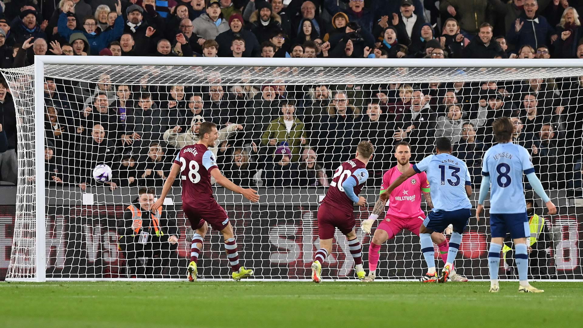 وتقدم ويستهام في الدقيقة الخامسة عن طريق جاريد بوين، قبل أن يضيف هدفا آخر بعد ذلك بدقيقتين، فيما سجل نيل موباي هدف برنتفورد الأول في الدقيقة 13.