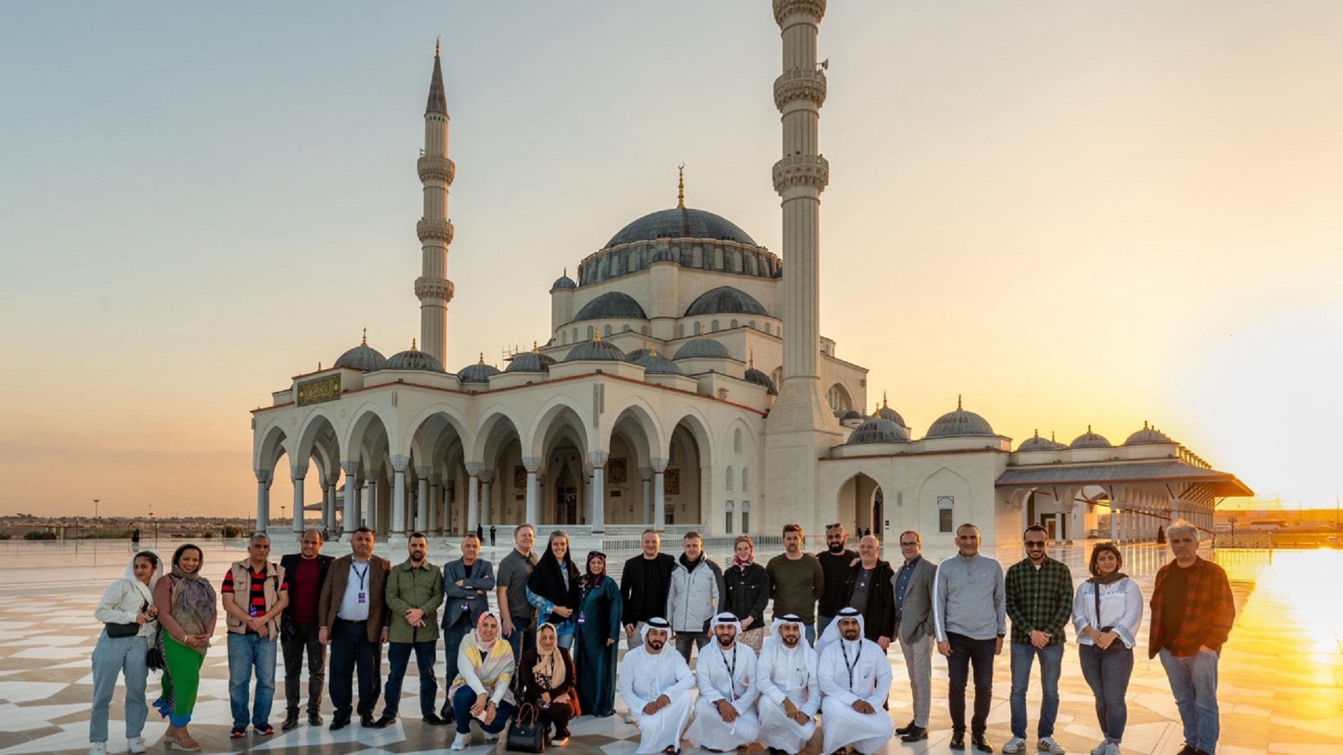 واتجه المشاركون في الجولات الميدانية إلى "مسجد الشارقة"، الصرح المعماري الفريد الذي يجسد جماليات العمارة الإسلامية، ويعد نموذجاً فريداً للفن الإسلامي الحديث من حيث ما اشتمله من واستخدام الرسم بالخط العربي في تكوين لوحات تشكيلية إبداعية.