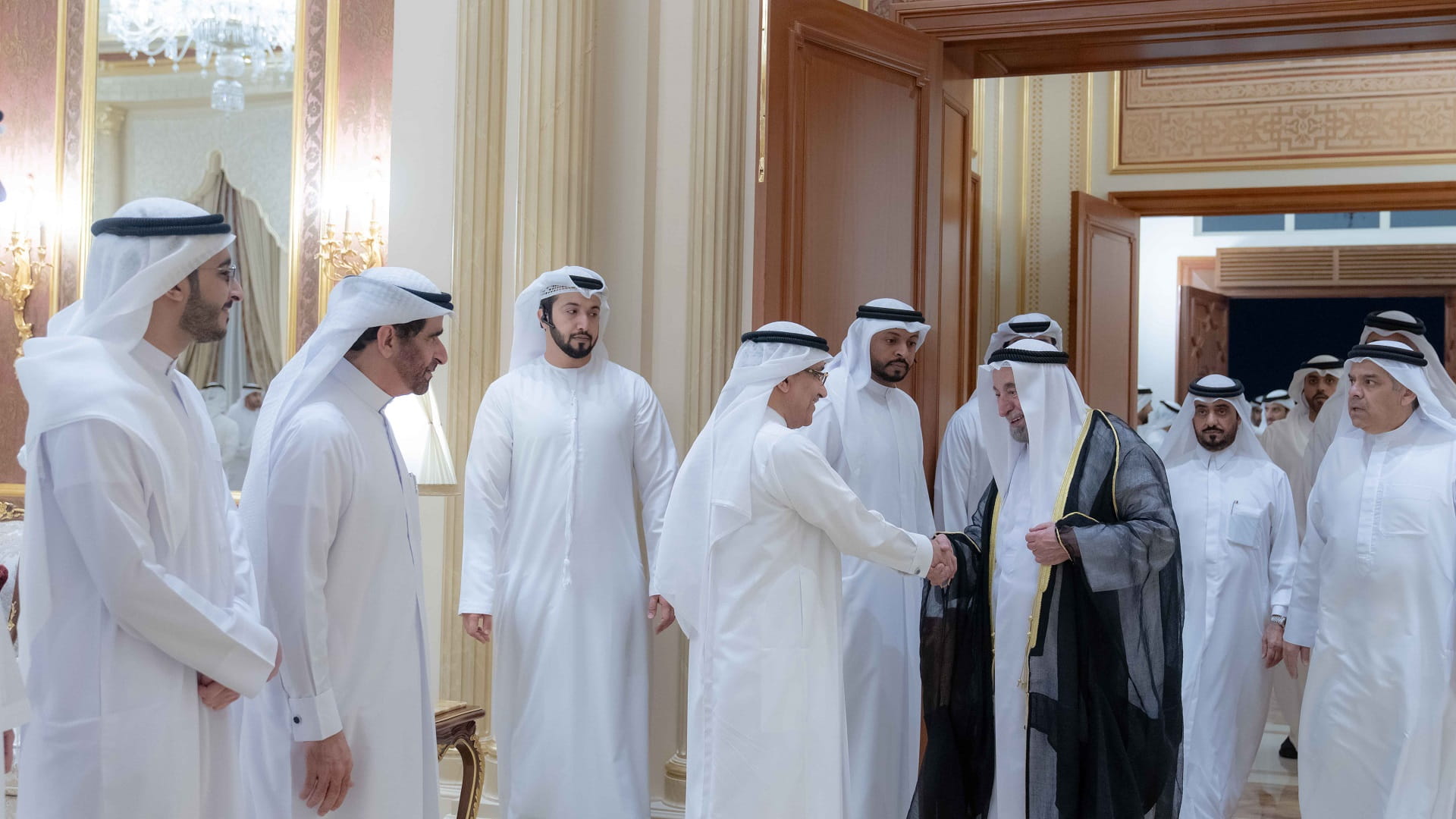 وتلقى سموه التهاني والتبريكات بهذه المناسبة الدينية العظيمة من كبار المسؤولين وأعيان البلاد وأبناء القبائل والمواطنين، ومن معالي عبد الرحمن بن محمد العويس وزير الصحة ووقاية المجتمع، ومن كبار ضباط القيادة العامة لشرطة الشارقة.