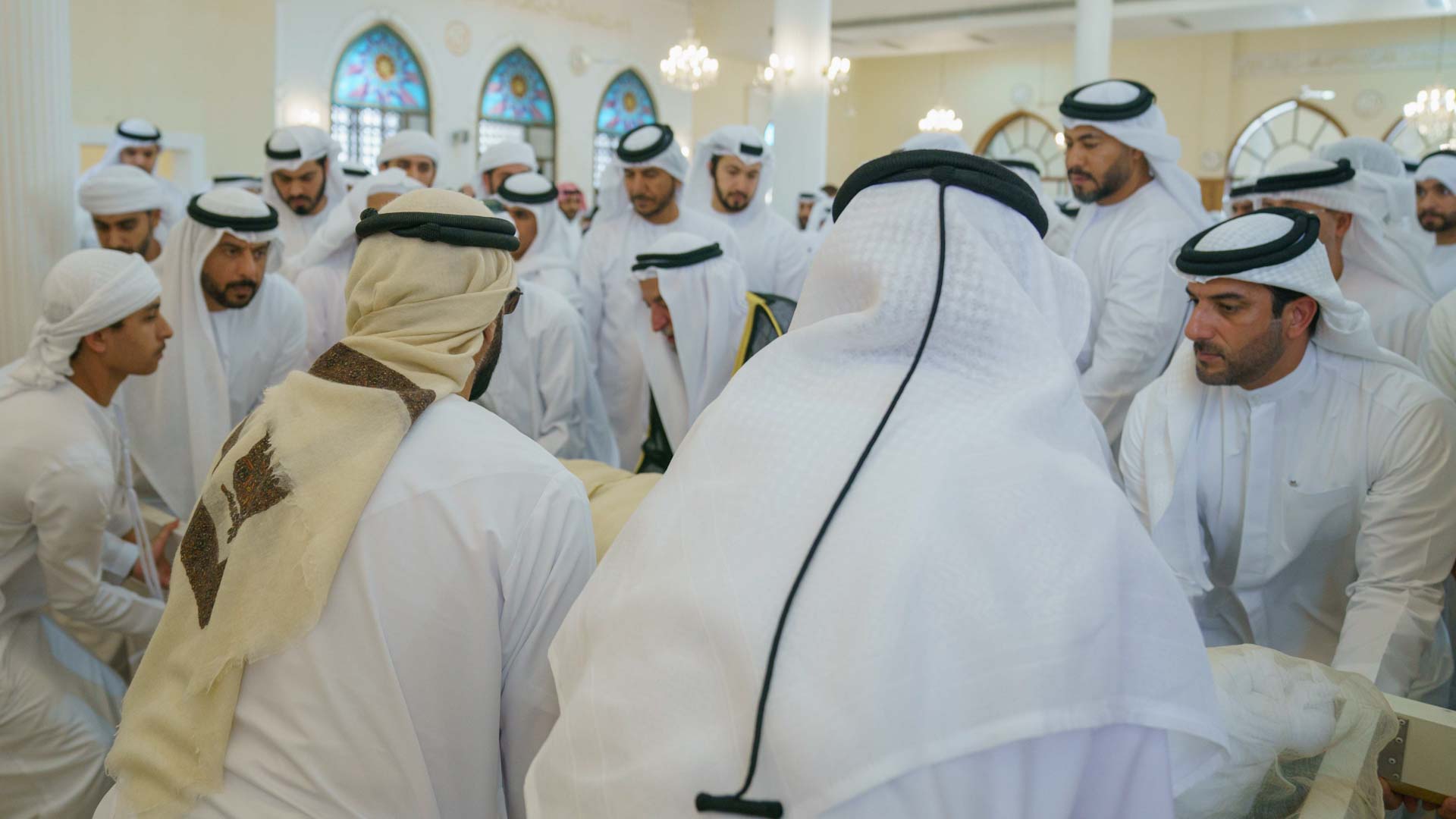 وأدى الصلاة إلى جانب سموه سمو الشيخ عبد الله بن سالم بن سلطان القاسمي نائب حاكم الشارقة، وسمو الشيخ سلطان بن أحمد بن سلطان القاسمي نائب حاكم الشارقة.