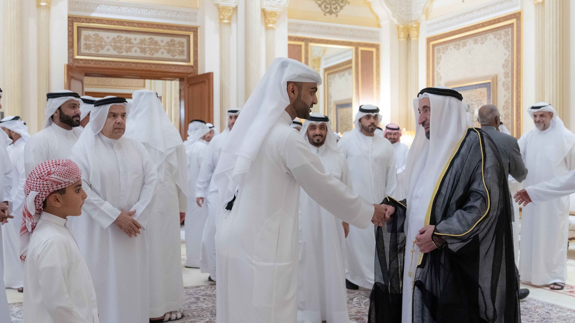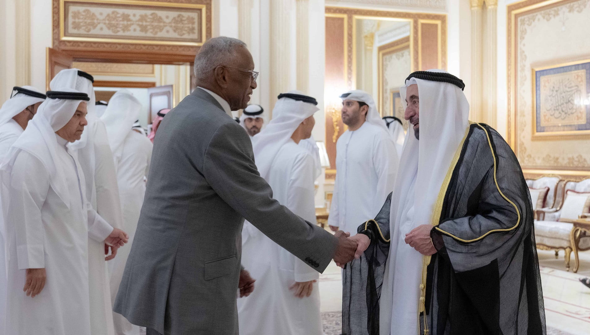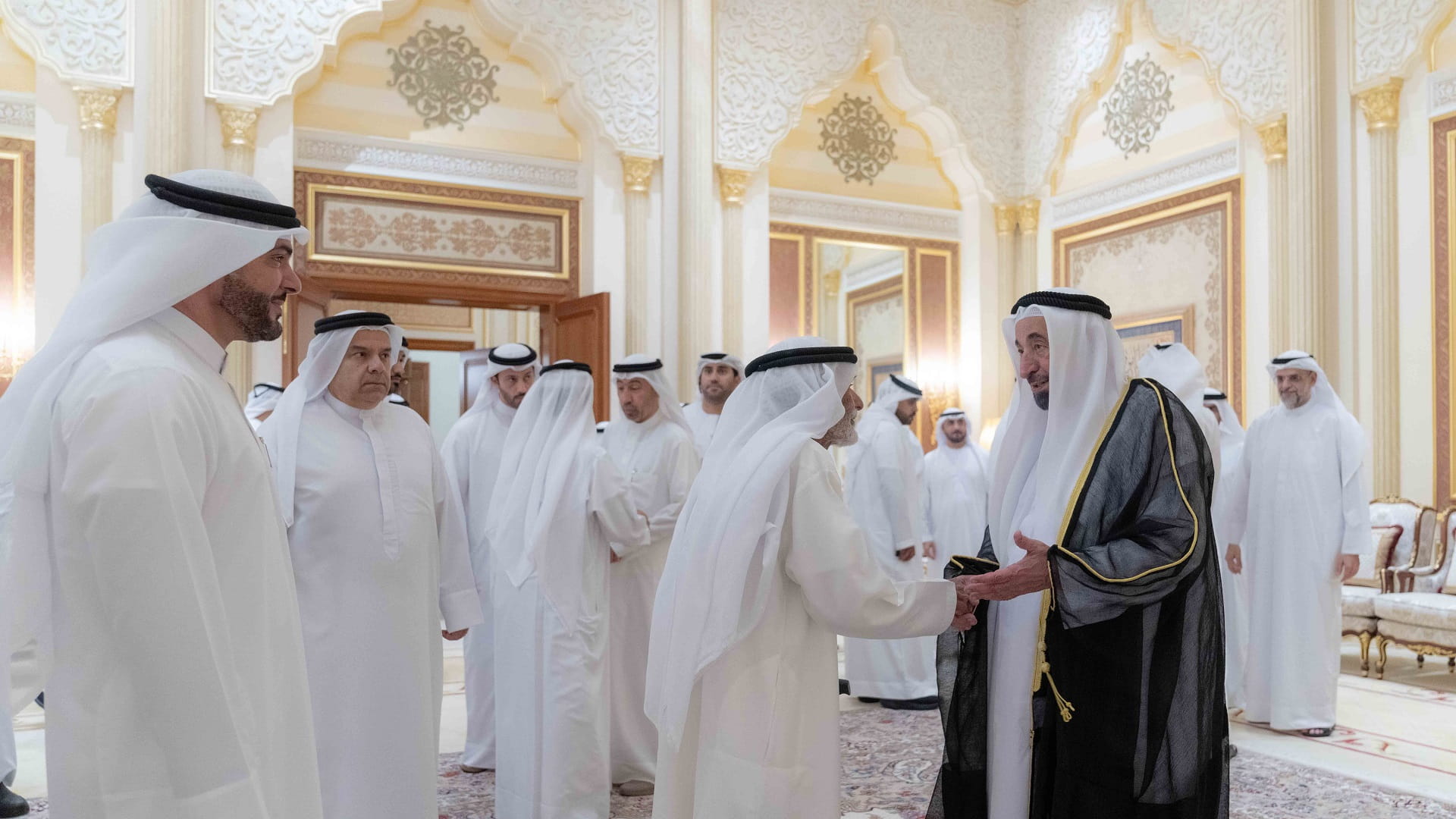 حضر الاستقبال بجانب صاحب السمو حاكم الشارقة كل من: الشيخ عبد الله بن محمد آل ثاني المستشار بمكتب سمو الحاكم، والشيخ عصام بن صقر القاسمي المستشار بمكتب سمو الحاكم، والشيخ محمد بن سعود القاسمي رئيس دائرة المالية المركزية، والشيخ خالد بن عبد الله القاسمي رئيس هيئة الشارقة للموانئ والجمارك والمناطق الحرة، والشيخ خالد بن عصام القاسمي رئيس دائرة الطيران المدني، والشيخ محمد بن حميد القاسمي رئيس دائرة الإحصاء والتنمية المجتمعية، والشيخ ماجد بن سلطان القاسمي رئيس دائرة شؤون الضواحي، والشيخ صقر بن محمد القاسمي رئيس مجلس إدارة جمعية الشارقة الخيرية، والشيخ خالد بن صقر القاسمي رئيس هيئة الوقاية والسلامة، والشيخ محمد بن صقر القاسمي رئيس هيئة تطوير معايير العمل.
