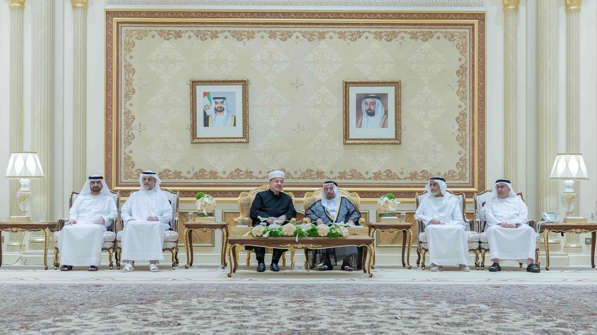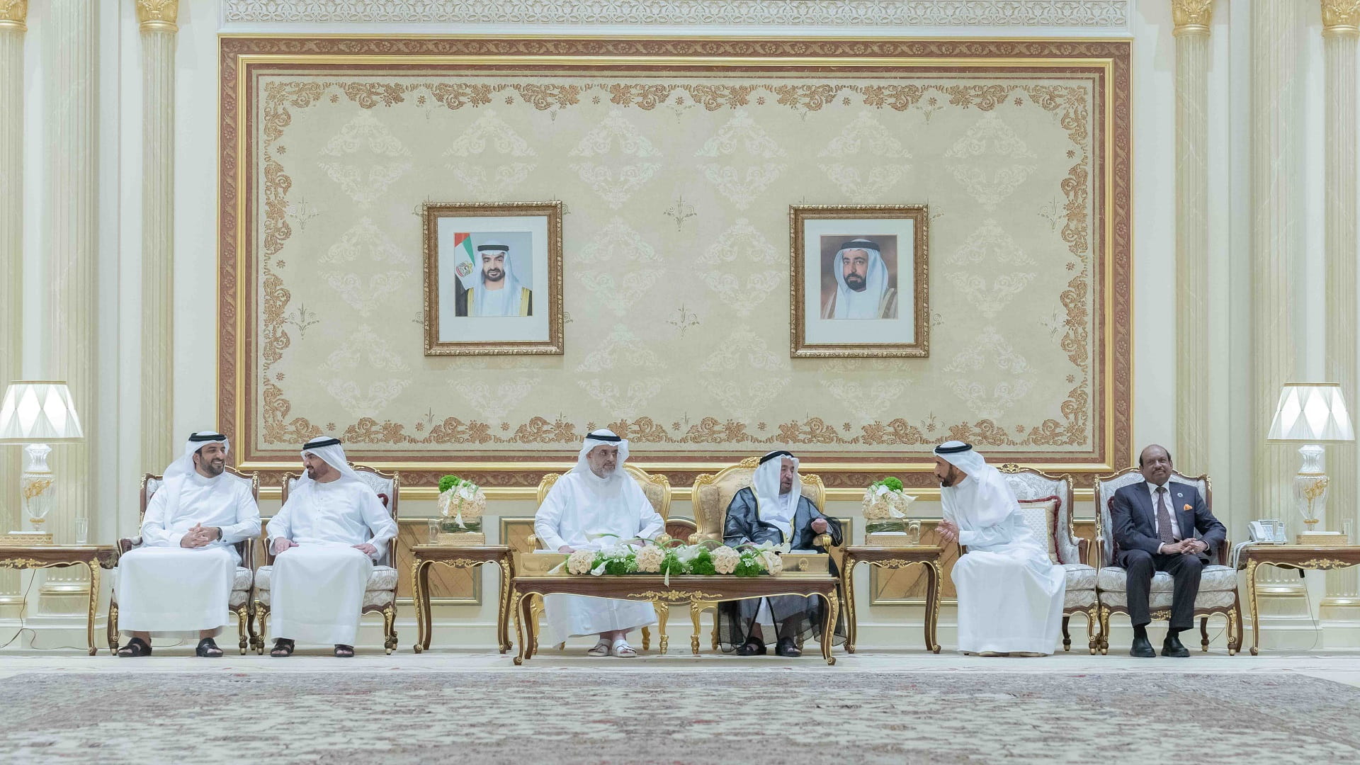 كما حضر الاستقبال، الشيخ محمد بن أحمد القاسمي نائب رئيس مجلس النفط، والشيخ فيصل بن سعود القاسمي مدير هيئة مطار الشارقة الدولي، والشيخ عبد الله بن محمد القاسمي مدير الهيئة العامة للشؤون الإسلامية والأوقاف بالشارقة، ومعالي عبد الرحمن بن محمد العويس وزير الصحة ووقاية المجتمع، وسعادة راشد أحمد بن الشيخ رئيس الديوان الأميري، وعدد من كبار المسؤولين رؤساء ومديري الدوائر الحكومية.