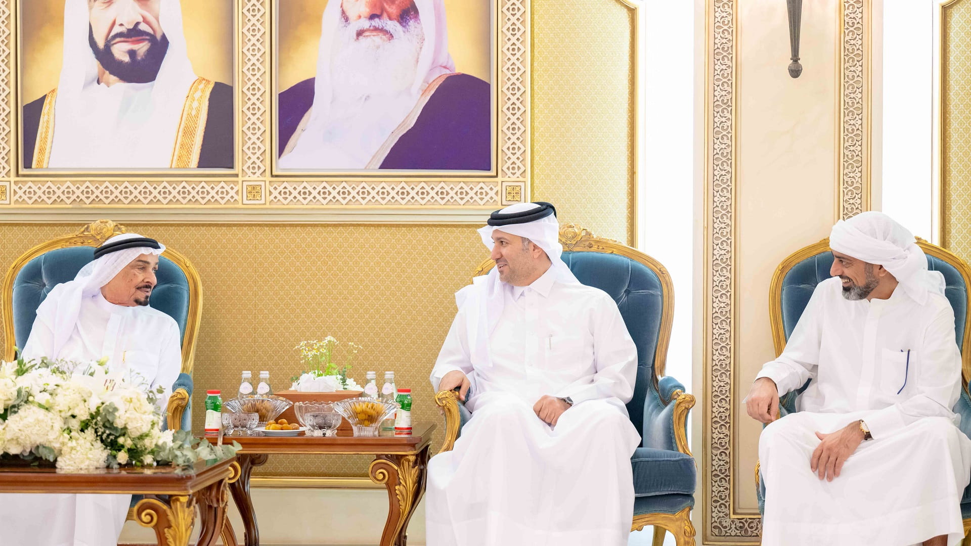 استقبل صاحب السمو الشيخ حميد بن راشد النعيمي عضو المجلس الأعلى حاكم عجمان، بحضور سمو الشيخ عمار بن حميد النعيمي ولي عهد عجمان، عدداً من القناصل الذين قدموا التهنئة لسموهما بمناسبة شهر رمضان المبارك، في قصر الزاهر، مساء الثلاثاء.
