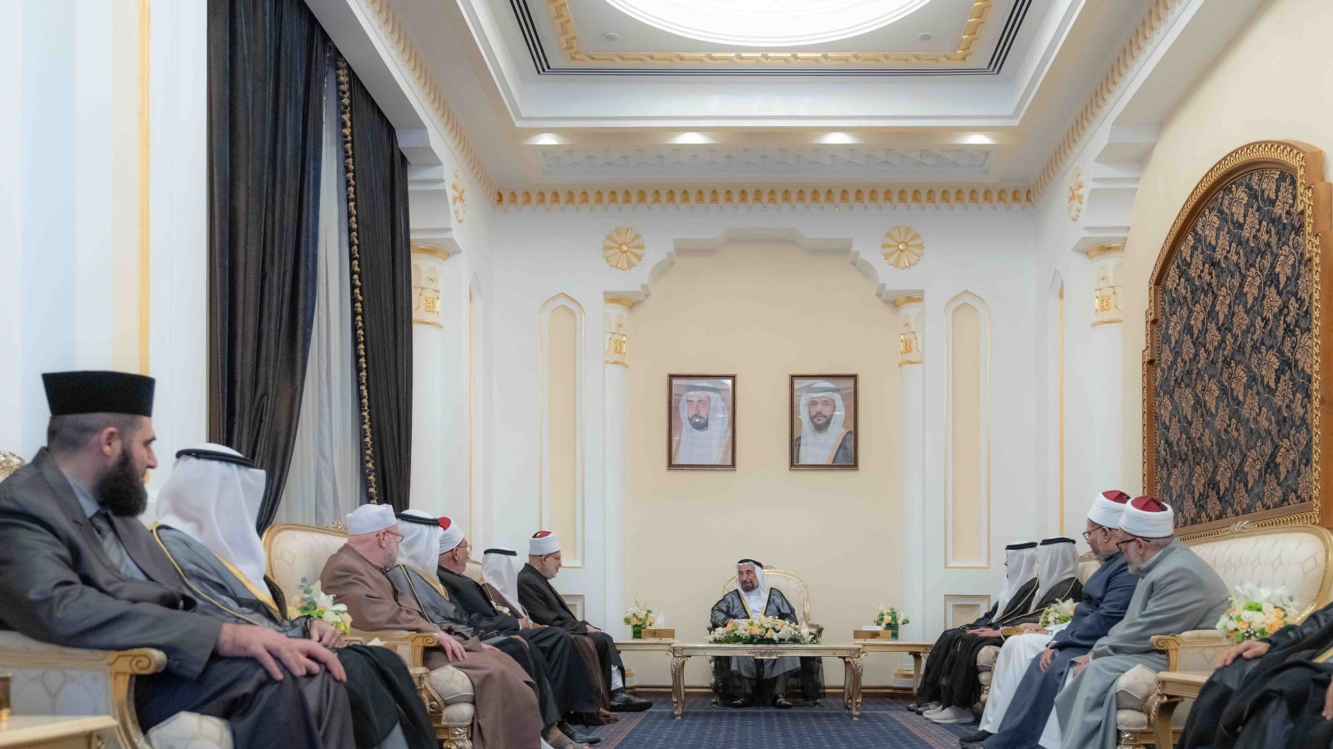 وتفضل صاحب السمو حاكم الشارقة، بأخذ الصور التذكارية مع العلماء أعضاء لجنة التحكيم والمراجعة.