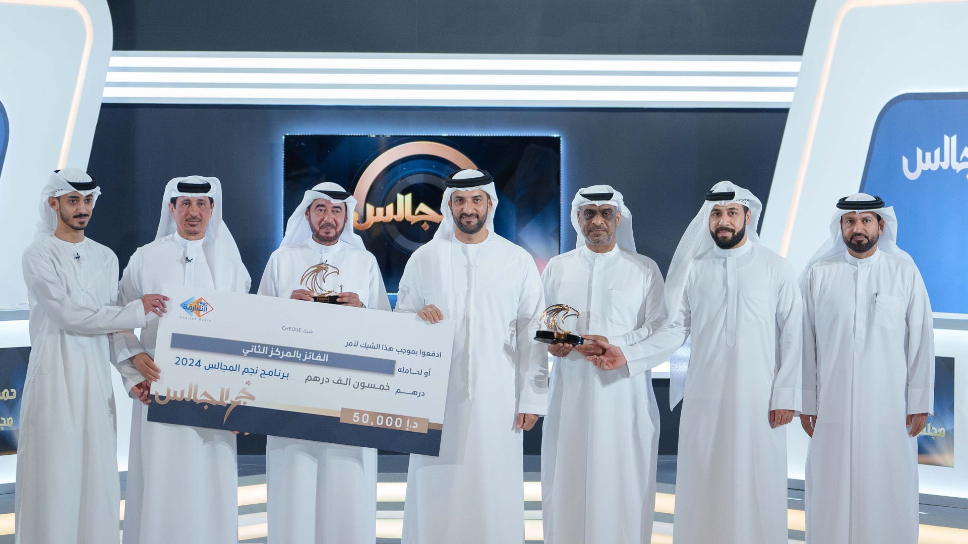 وتفضل سموه بتكريم الفائزين لنسخة نجم المجالس هذا العام، حيث فاز بجائزة المركز الأول فريق حمد نعمان آل علي، من مجلس ضاحية واسط، ونال سيارة مقدمة من مصرف الشارقة الإسلامي بالإضافة إلى مبلغ 70 ألف درهم، فيما حل في المركز الثاني فريق حمد الجراح، من مجلس ضاحية الحوامي، وفاز بجائزة قدرها 50 ألف درهم، بينما نال فريق أبوبكر القطان من مجلس ضاحية مويلح المركز الثالث، وحصل على 30 ألف درهم، وذلك بعد اختياره بنظام تجميع النقاط بينه وبين صاحب المركز الرابع.