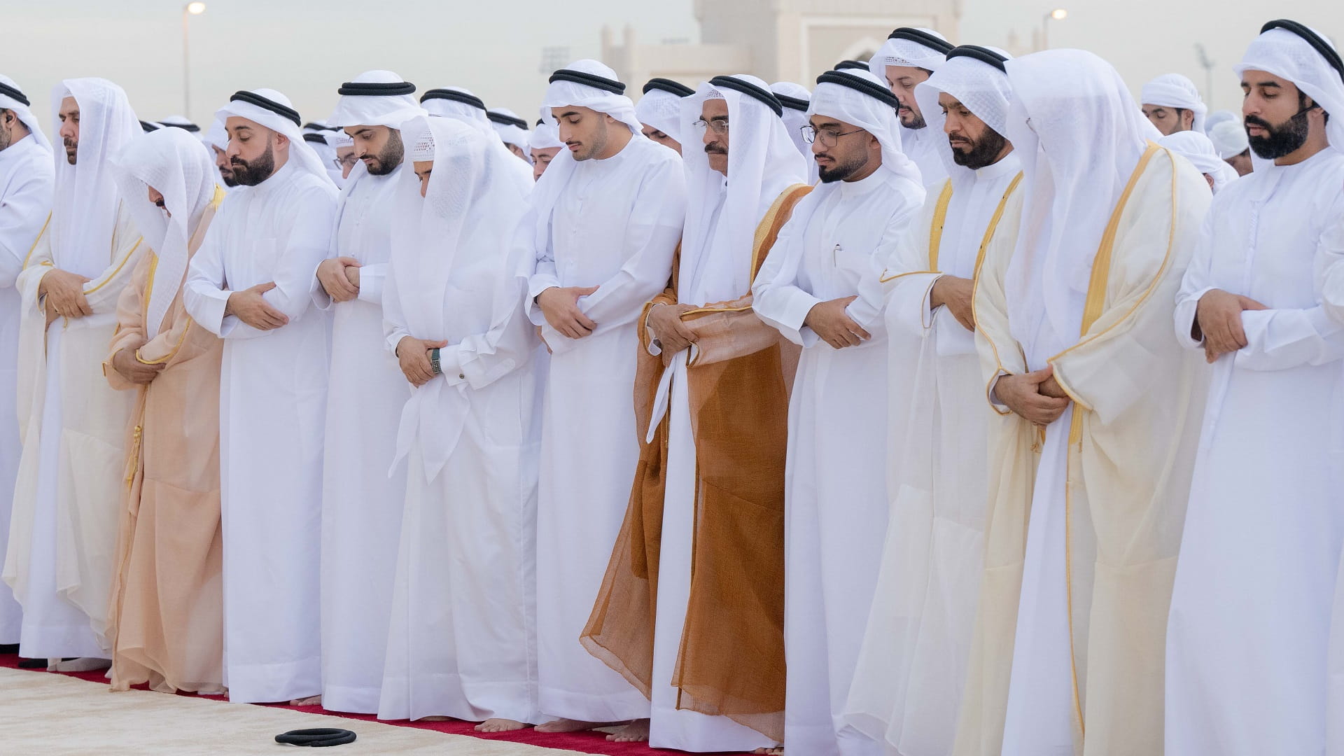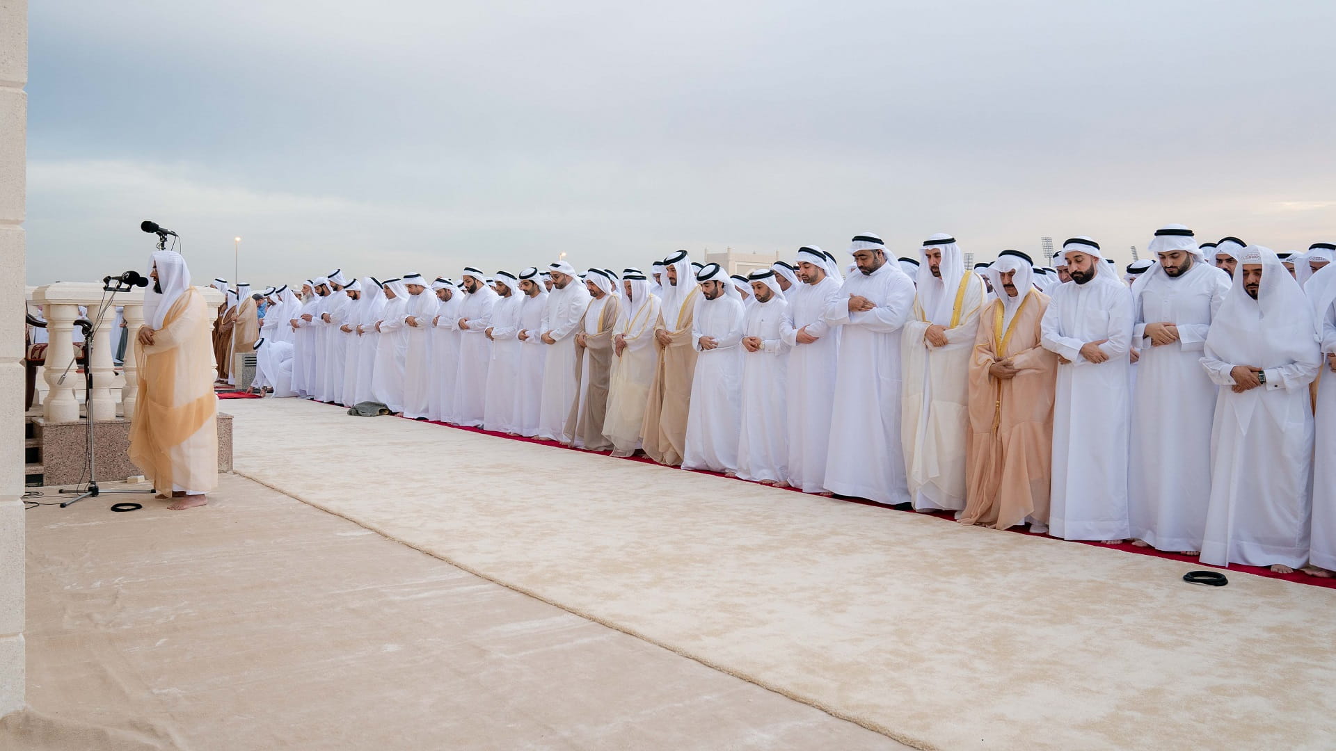 وأدى الصلاة إلى جانب سموه، كل من الشيخ خالد بن عبد الله القاسمي رئيس هيئة الشارقة للموانئ والجمارك والمناطق الحرة، والشيخ سالم بن عبد الرحمن القاسمي رئيس مكتب سمو الحاكم، والشيخ محمد بن حميد القاسمي رئيس دائرة الإحصاء والتنمية المجتمعية، والشيخ ماجد بن سلطان القاسمي رئيس دائرة شؤون الضواحي، والشيخ سعود بن سلطان بن محمد القاسمي مدير عام دائرة الشارقة الرقمية، والشيخ عبد الله بن محمد القاسمي مدير الهيئة العامة للشؤون الإسلامية والأوقاف بالشارقة، وعدد من الشيوخ، ومعالي عبد الرحمن بن محمد العويس وزير الصحة ووقاية المجتمع، ومعالي الدكتور عبد الله بلحيف النعيمي رئيس المجلس الاستشاري لإمارة الشارقة، ورؤساء الدوائر والمؤسسات المحلية والاتحادية.