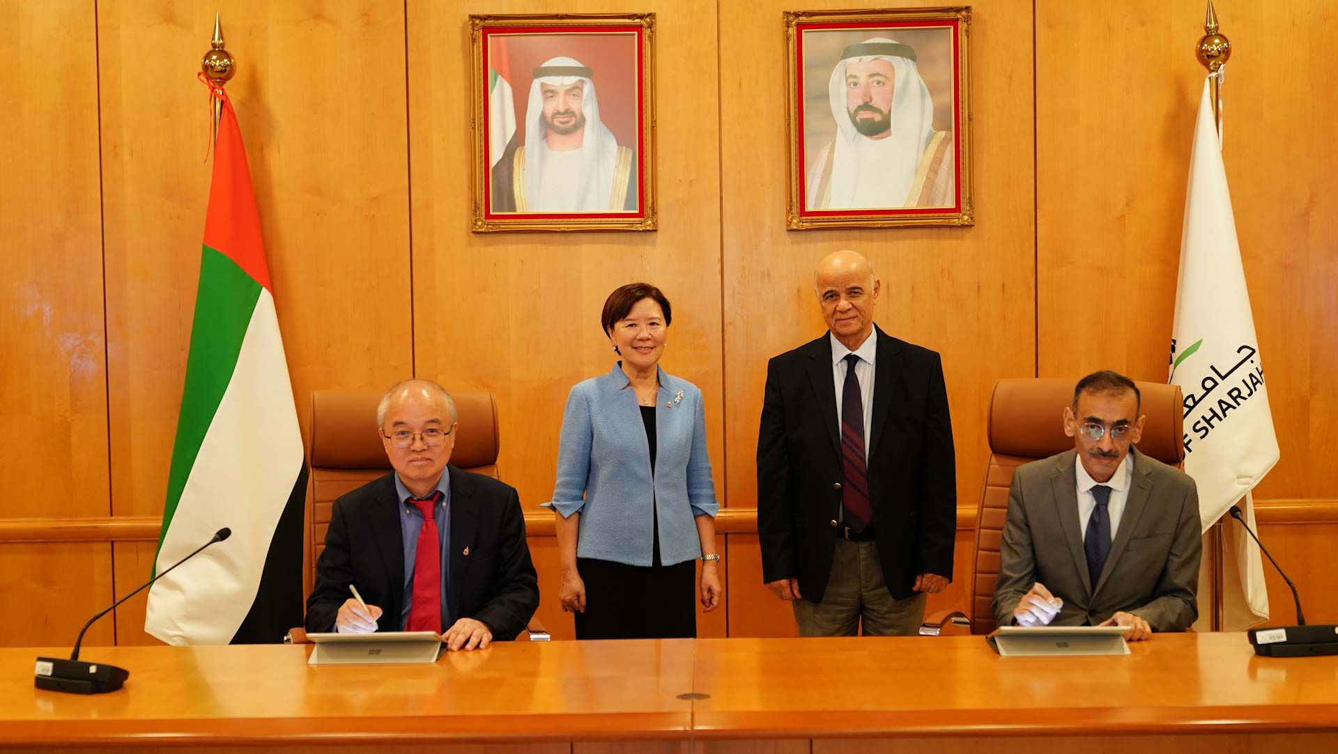 بحضور الأستاذ الدكتور حميد مجول النعيمي، مدير جامعة الشارقة، والبروفيسورة نانسي آي بي، رئيسة جامعة هونغ كونغ للعلوم والتكنولوجيا HKUST، وقعت الجامعتان مذكرة تفاهم بهدف تعزيز وتطوير التعاون الأكاديمي في مجال التعليم والبحث العلمي.