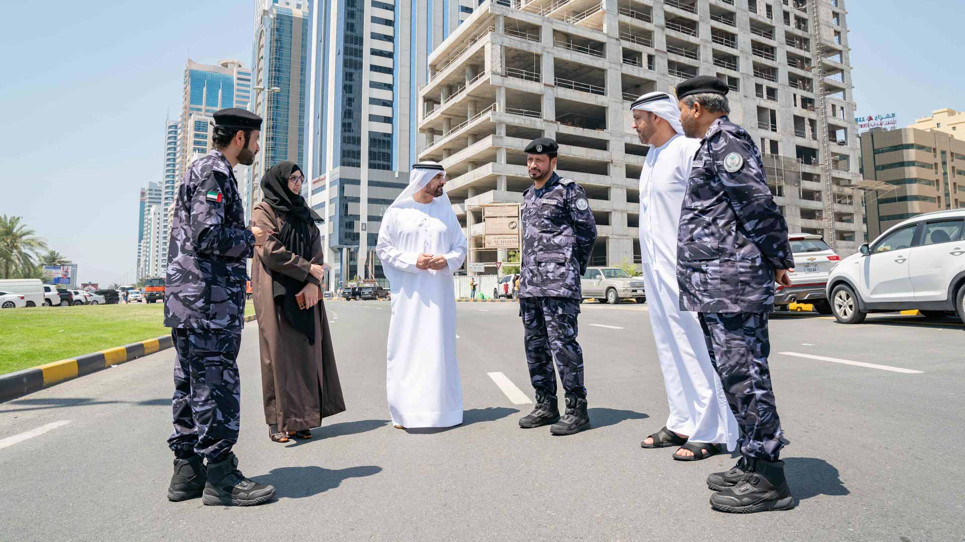 رافق سمو نائب حاكم الشارقة خلال الجولة كل من: اللواء سيف الزري الشامسي قائد عام شرطة الشارقة، رئيس الفريق المحلي للطوارئ والأزمات في إمارة الشارقة، وعفاف إبراهيم المري رئيس دائرة الخدمات الاجتماعية، وعبيد سعيد الطنيجي مدير عام بلدية إمارة الشارقة، والعقيد سامي خميس النقبي مدير عام هيئة الشارقة للدفاع المدني.