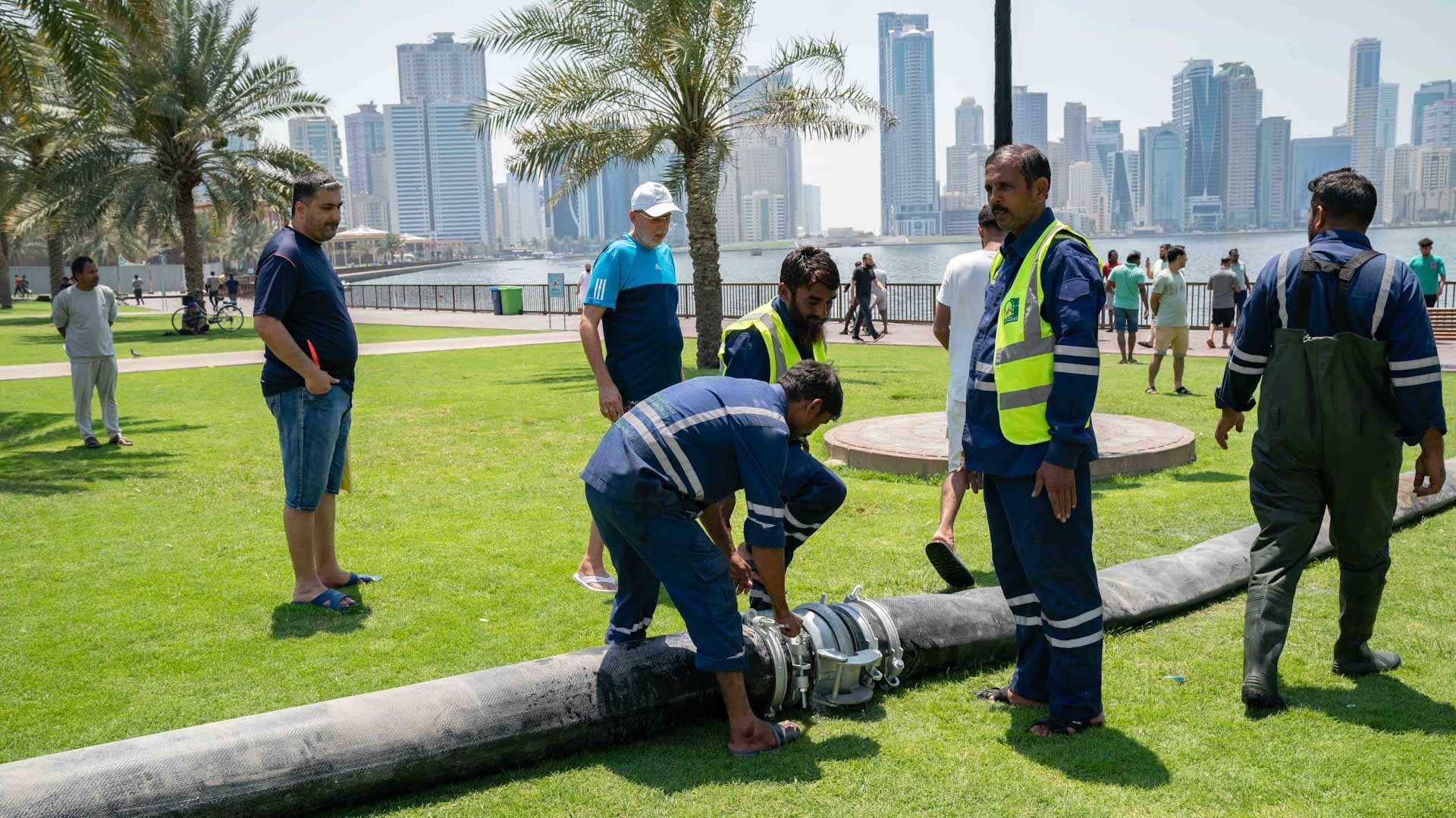 وأشاد سموه بجهود فرق العمل والقائمين على عملية تصريف مياه الأمطار والمتواجدين على مدار الساعة في الميدان لخدمة قاطني المنطقة، داعياً إياهم بضرورة تكثيف الجهود وتقديم التسهيلات لتوفير احتياجات السكان وضمان سهولة الحركة واستخدام طرقات الإمارة بشكل يسير.