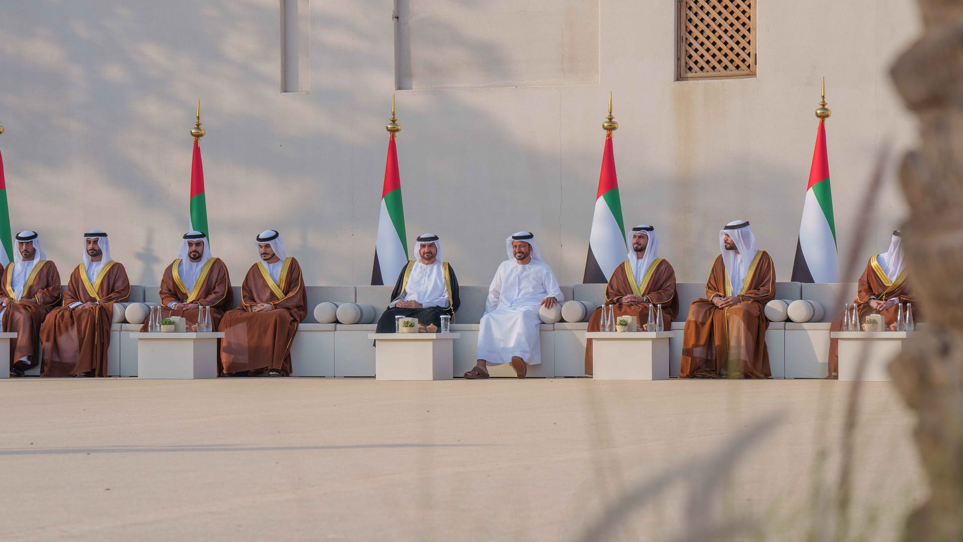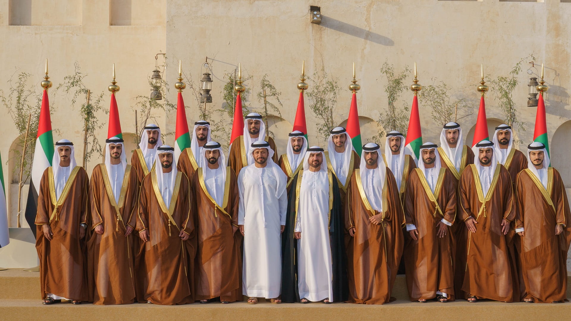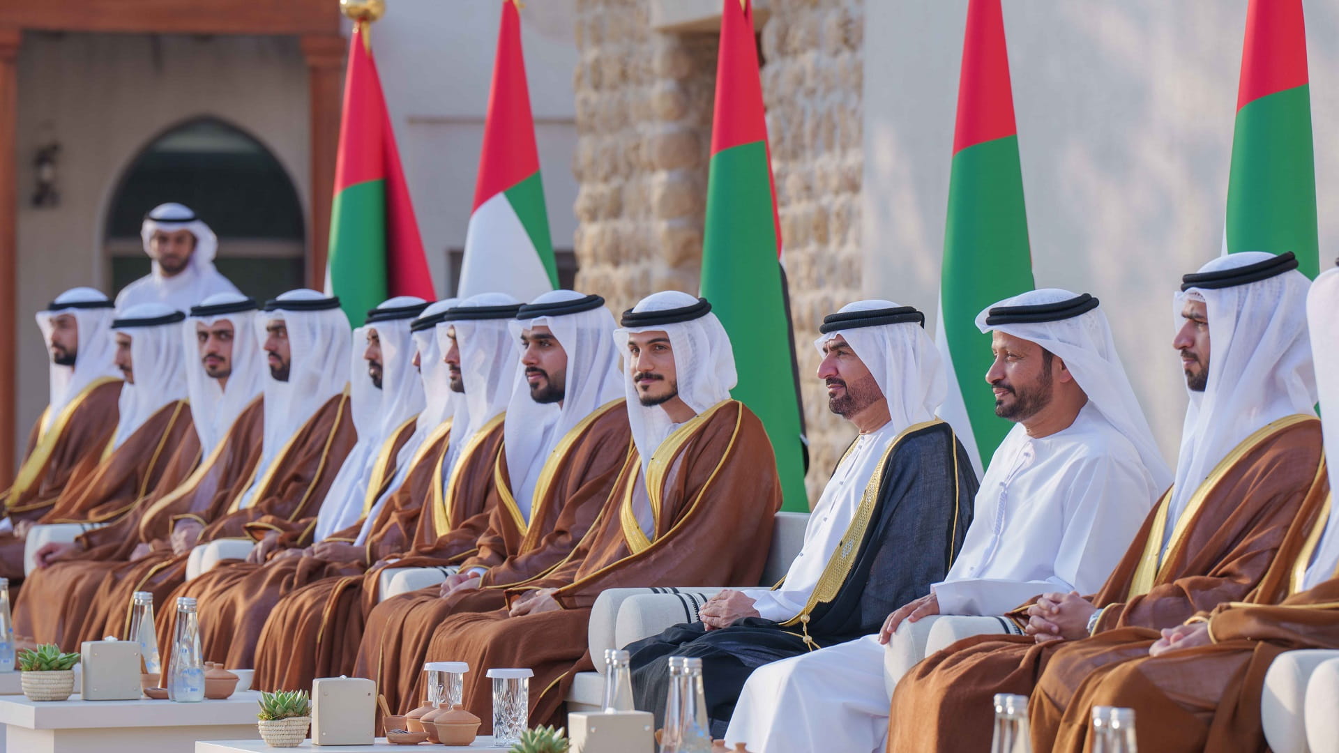 والتقط سمو نائب حاكم الشارقة صورة جماعية مع العرسان، الذي دعوا الباري سبحانه، أن يديم على دولة الإمارات العربية المتحدة عزها وتقدمها، وأفراحها في ظل القيادة الرشيدة.
