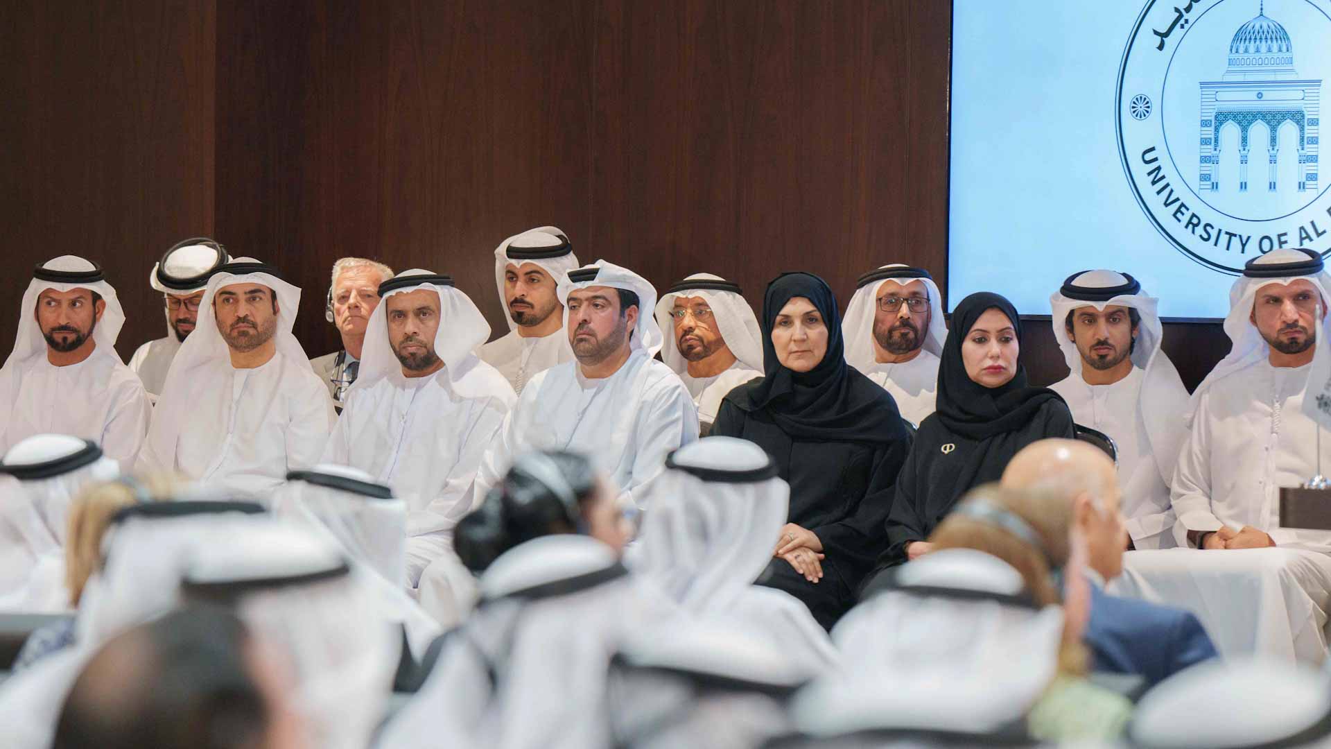 حضر مراسم توقيع مرسوم إنشاء الجامعة بجانب صاحب السمو حاكم الشارقة، كل من الشيخ سالم بن عبد الرحمن القاسمي رئيس مكتب سمو الحاكم، وسعادة راشد أحمد بن الشيخ رئيس الديوان الأميري، وسعادة الدكتور خليفة مصبح الطنيجي رئيس دائرة الزراعة والثروة الحيوانية، وسعادة المهندس علي بن شاهين السويدي رئيس دائرة الأشغال العامة، وسعادة الدكتور منصور بن نصار رئيس الدائرة القانونية لحكومة الشارقة، وسعادة محمد عبيد الزعابي رئيس دائرة التشريفات والضيافة، وسعادة الدكتورة محدثة الهاشمي رئيسة هيئة الشارقة للتعليم الخاص، وعدد من كبار المسؤولين وأعيان المنطقة، وأعضاء مجلس الأمناء والهيئتين التدريسية والإدارية.