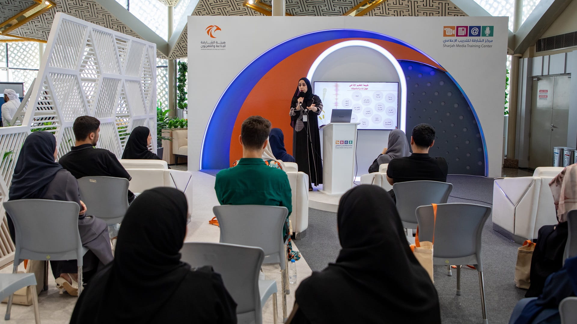 شارك مركز الشارقة للتدريب الإعلامي التابع لهيئة الشارقة للإذاعة والتلفزيون بالتعاون مع إذاعة الشارقة الاثنين في المعرض الـ 16 لمشاريع التخرج لكلية الاتصال بجامعة الشارقة والذي أقيم تحت رعاية سمو الشيخ سلطان بن أحمد بن سلطان القاسمي نائب حاكم الشارقة رئيس جامعة الشارقة تحت شعار "دعم التوظيف" .