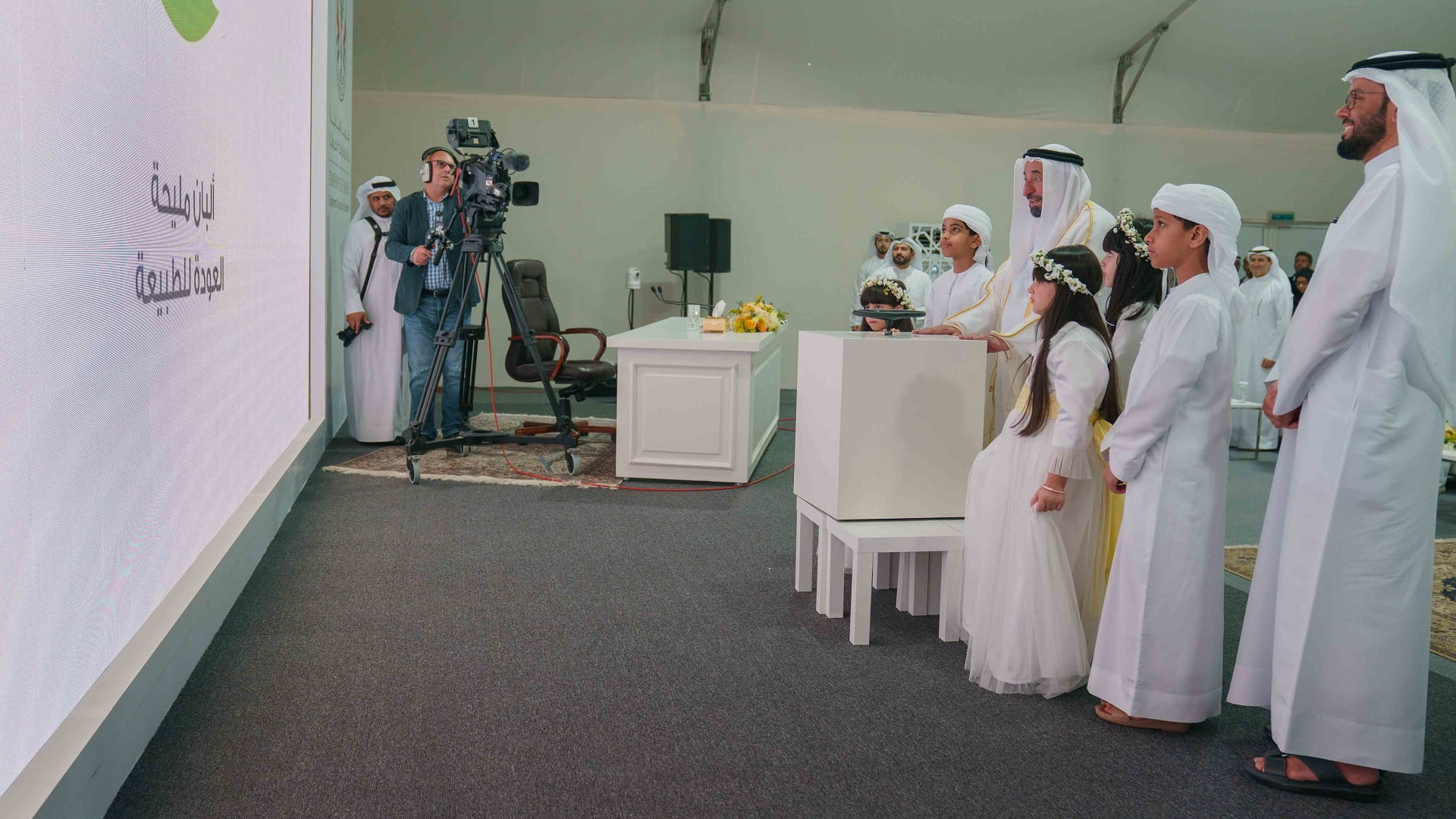 وشهد سموه فور وصوله قرع جرس المزرعة بواسطة مجموعة من الأطفال، إيذاناً بافتتاح المزرعة الرسمي.