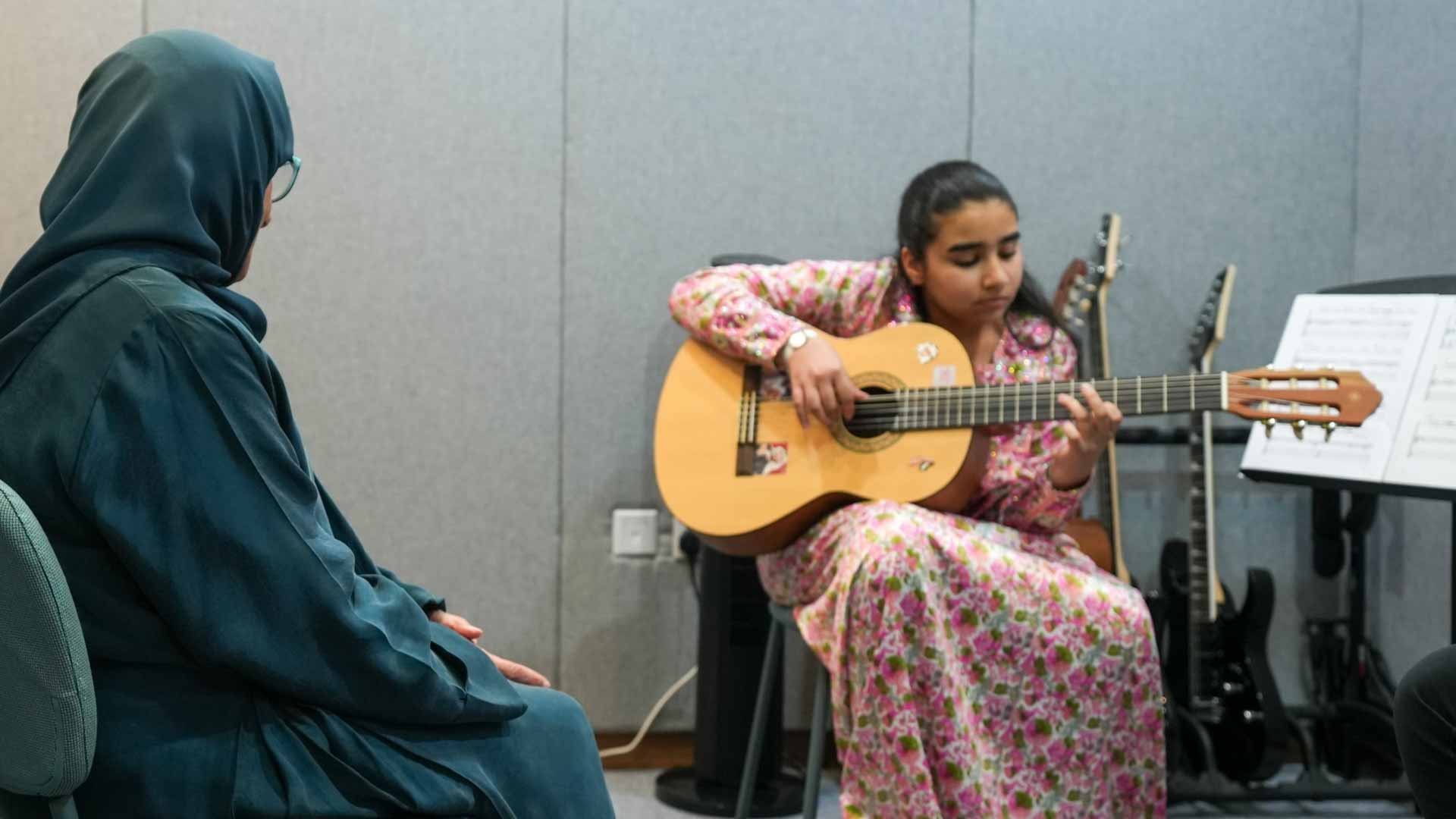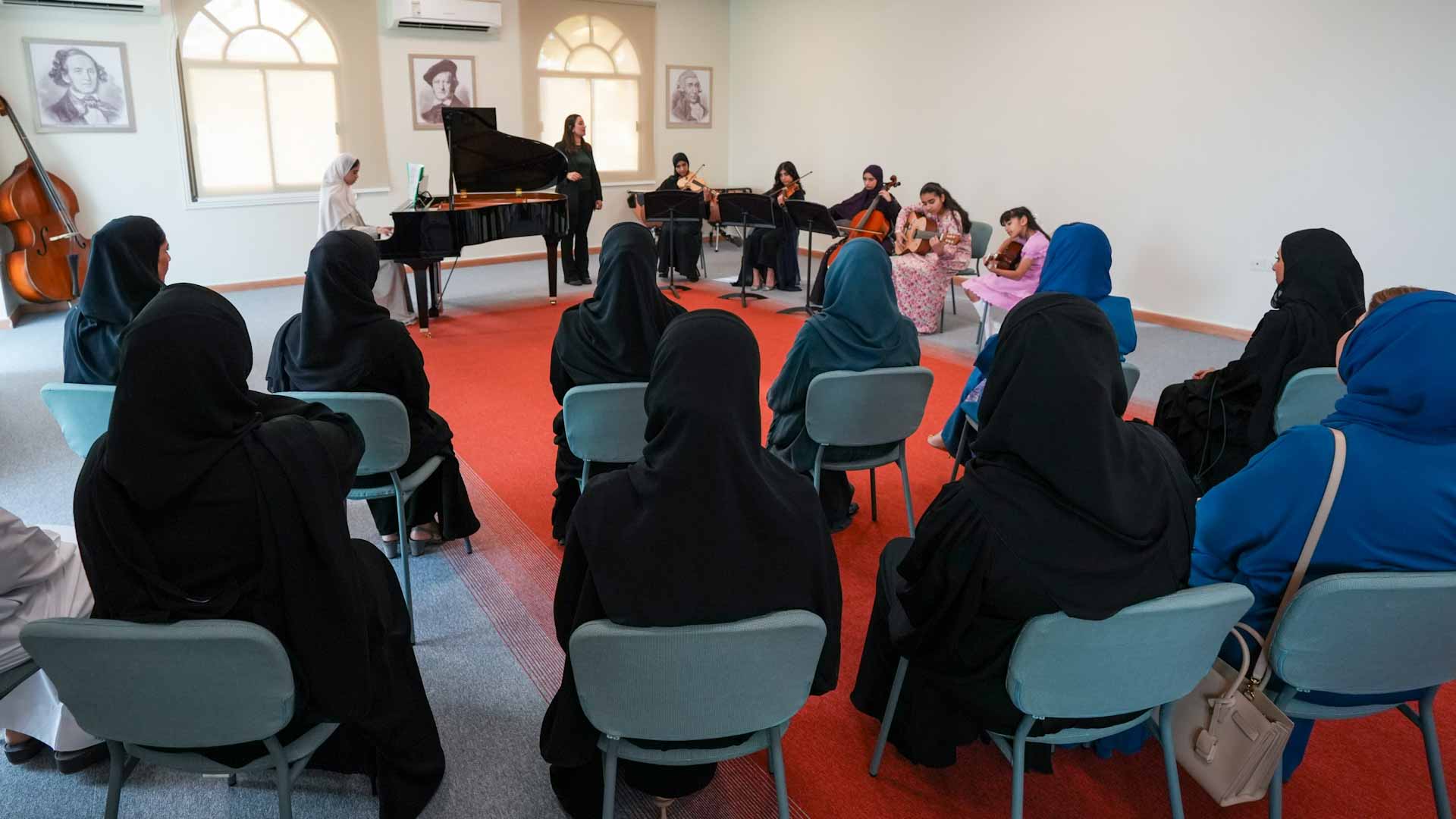 واطلعت سمو الشيخة جواهر القاسمي خلال جولتها في مرافق المركز على أدوات التعليم وبيئة الفصول للموسيقى والبالي، والقاعات الموسيقية المصممة بأحدث المواصفات لتوفير أفضل تجربة تعليمية للطلاب، كما اطلعت سموها على تجهيزات المركز المتطورة من أدوات وآلات موسيقية، التي تُعزز قدرته على تقديم التعليم الموسيقي رفيع المستوى.