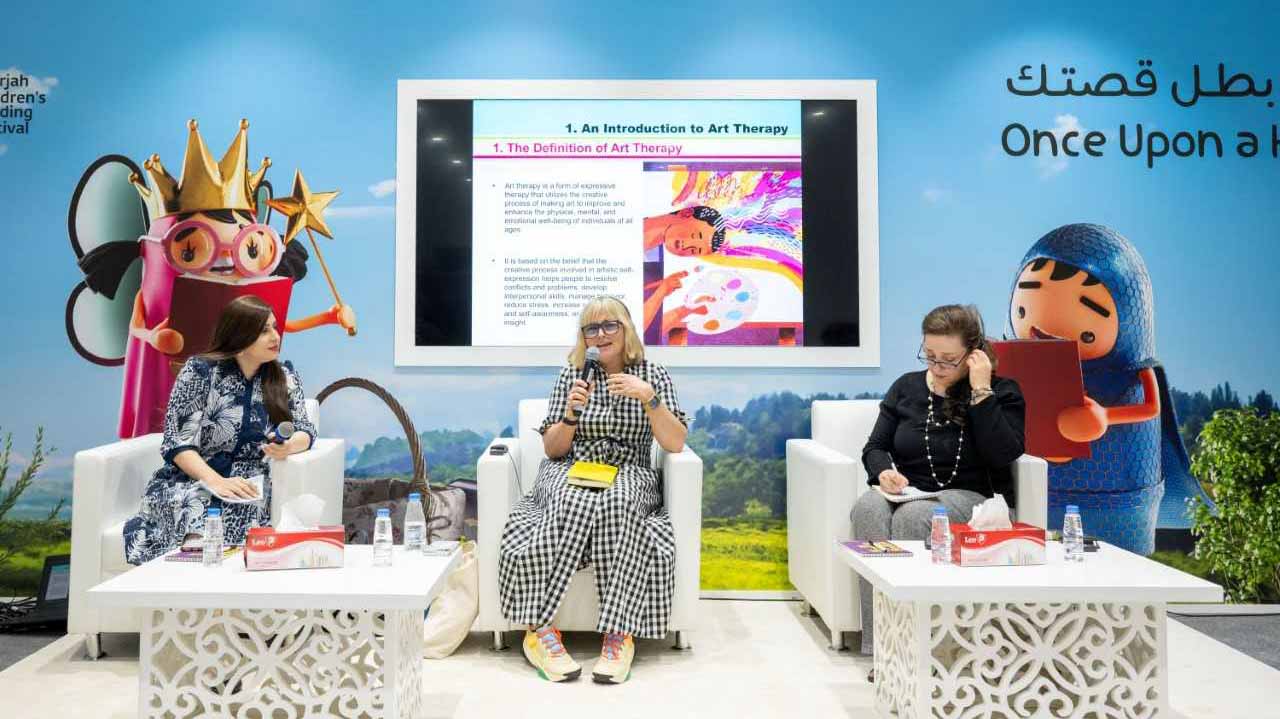 "هل يمكن للفن أن يعالج الأمراض؟" حول هذا السؤال جاءت جلسة "تقنيات العلاج بالفن للتعبير عن المشاعر وتقليل التوتر" التي شهدتها الدورة الـ 15 من مهرجان الشارقة القرائي للطفل، والتي استضافت الدكتورة سماء الهاشمي، من البحرين، وجين ماونت، من الولايات المتحدة، وأدارتها الدكتورة مانيا سويد.