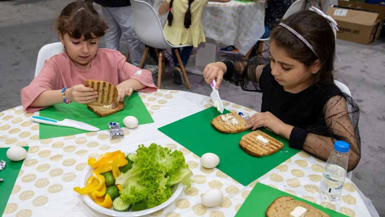واستمتع الأطفال المشاركون في الورشة، من الفئة العمرية 6 - 10 سنوات، بتجربة إعداد وجبة صحية وتناولها، تحت إشراف الطاهية العالمية سفيتلانا كوزفيتسوفا، حيث صنع الأطفال شطائر الخبز المحمص التي تتضمن أوراق الخس وشرائح الخيار والفلفل الأخضر والجبن، وغلفوها بورق بني، ثم وضعوها في سلة تشمل الخوخ والمشمش، والبيض المسلوق، ورقائق البطاطا، وانتظروا بفارغ الصبر لحظة تذوق الشطائر اللذيذة التي صنعوها وغلفوها.