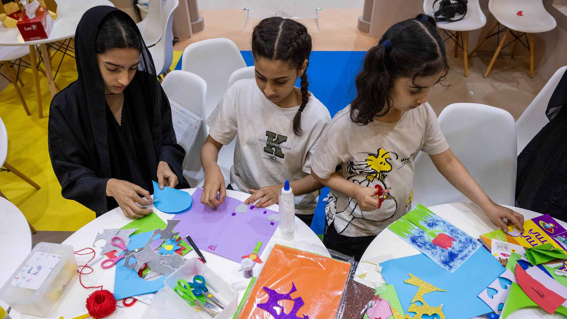 بأسلوب تفاعلي جذاب، تأخذ "مكتبة الشارقة العامة" الأطفال واليافعين في رحلة إلى عالم الحرف والفنون التي تنتمي إلى ثقافات مختلفة، وذلك ضمن برنامجها التثقيفي والتدريبي الحافل في الدورة الـ 15 من "مهرجان الشارقة القرائي للطفل" الذي انطلق بتاريخ 1 ويستمر حتى 12 مايو الجاري في مركز إكسبو الشارقة.