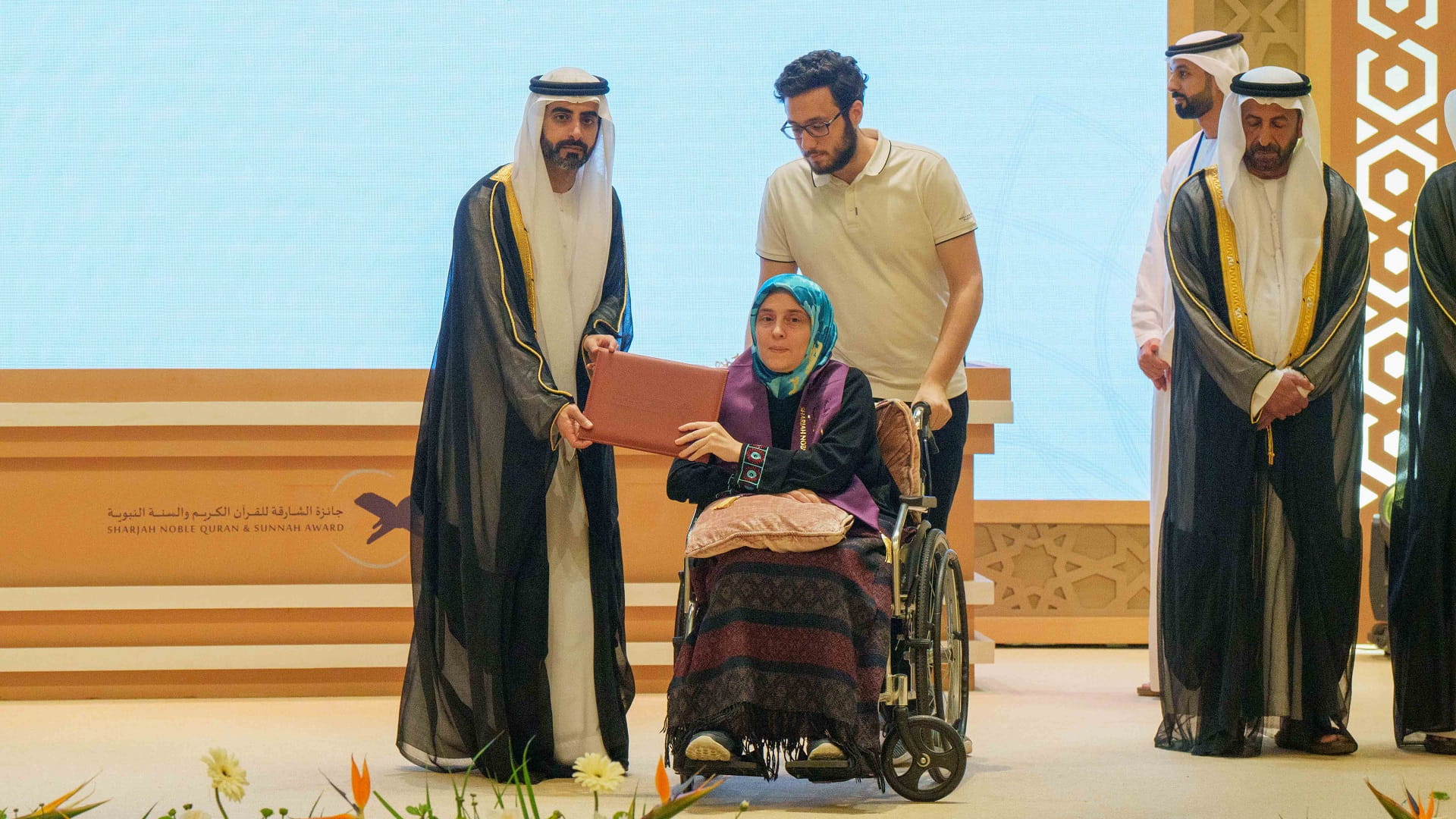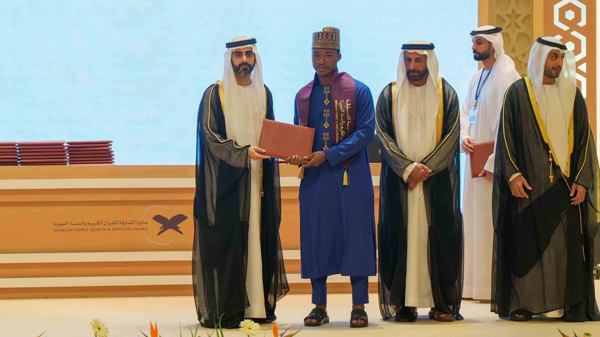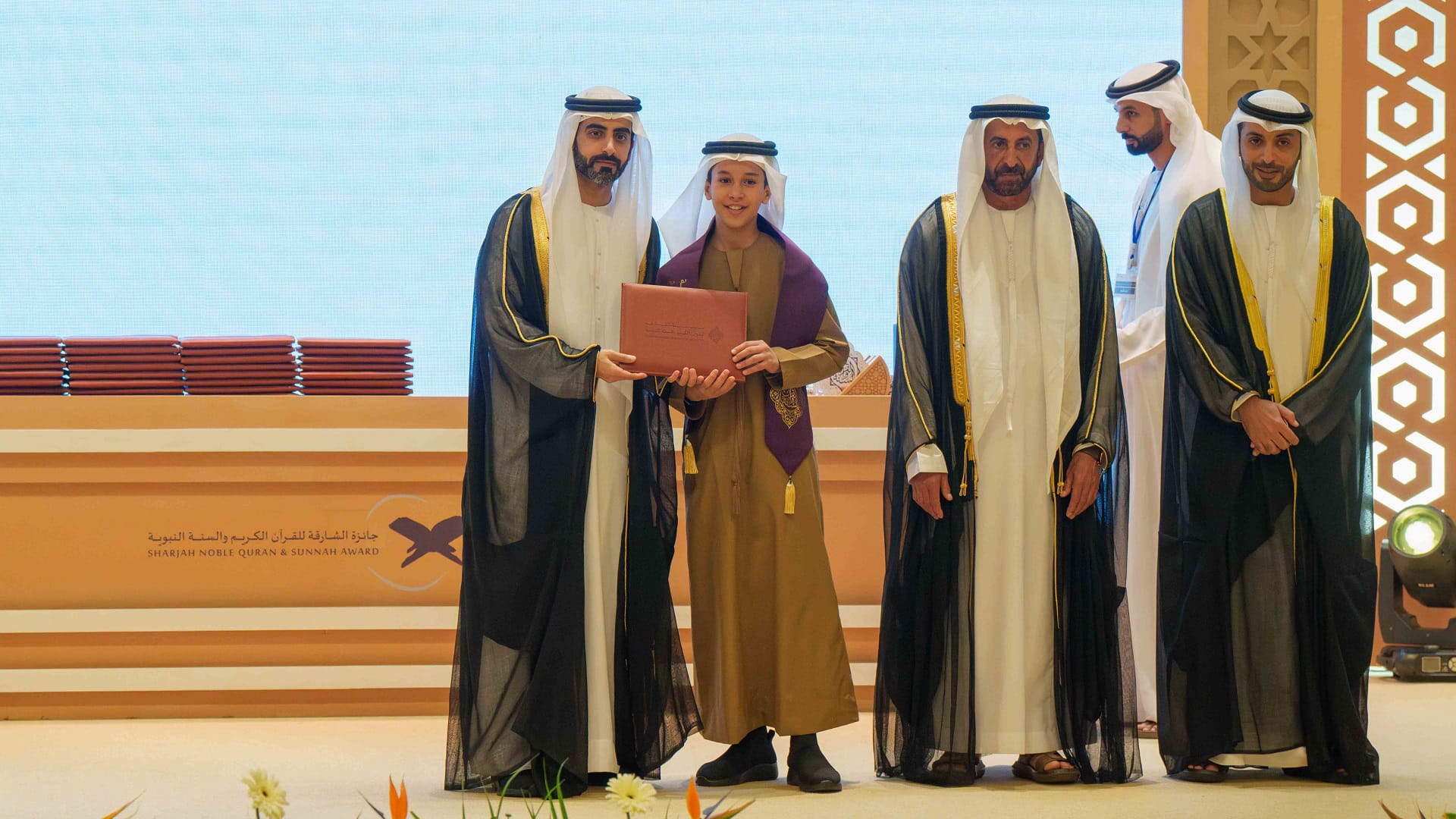 كما تسلم رئيس مكتب سمو الحاكم، درعاً تذكارياً، من مؤسسة الشارقة للقرآن الكريم والسنة تقديراً لتفضله بتشريف الحفل وتكريم الفائزين في هذه الدورة.