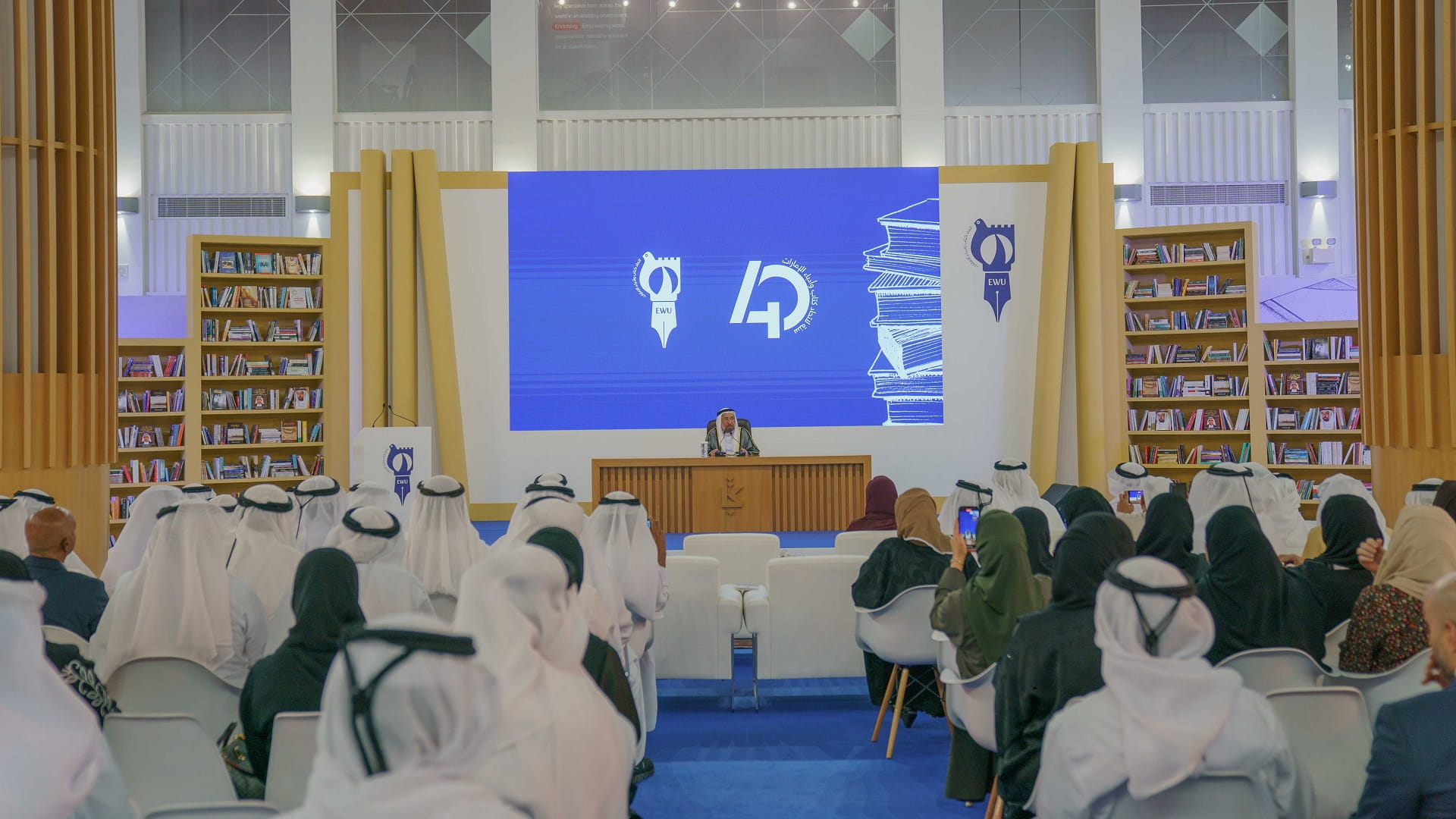 من جانبه، ألقى الدكتور سلطان العميمي رئيس مجلس إدارة اتحاد كتاب وأدباء الإمارات، كلمة ثمّن فيها حضور وتشريف ورعاية صاحب السمو حاكم الشارقة للحفل، وحديثه مع أبنائه من الكتّاب والأدباء الذي يُشكّل جزءاً من منظومته القيادية الحريصة على بناء الإنسان، وهويته ومداركه المعرفية، لافتاً إلى أن تخصيص يوم للكاتب الإماراتي يُعد ظاهرة حضارية مهمة في تاريخ اهتمام الوطن بالثقافة ودعمه المحتوى الإبداعي والفكري.