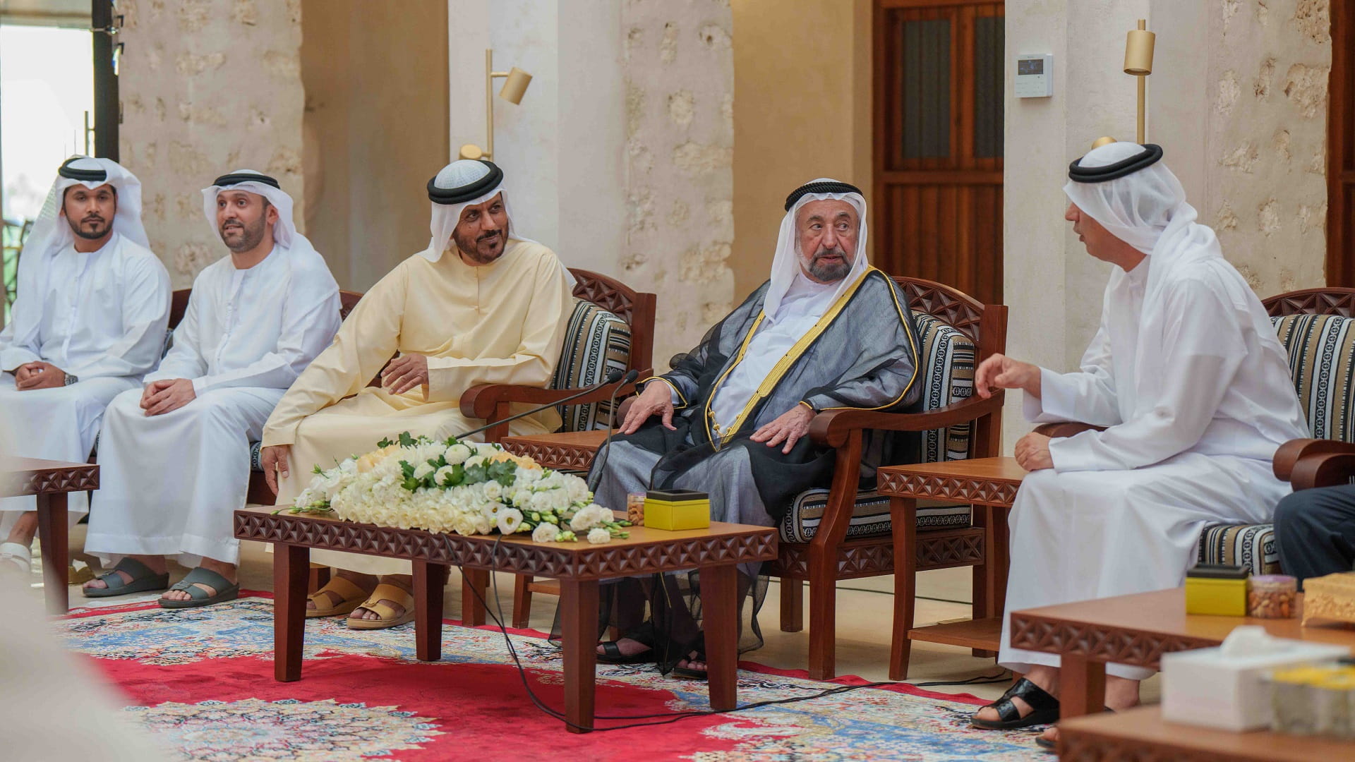 رافق صاحب السمو حاكم الشارقة، خلال زيارته سعادة كل من: عبد الله بن محمد العويس رئيس دائرة الثقافة، والدكتور صلاح بن بطي المهيري رئيس هيئة تنفيذ المبادرات "مبادرة"، ومحمد عبيد الزعابي رئيس دائرة التشريفات والضيافة.