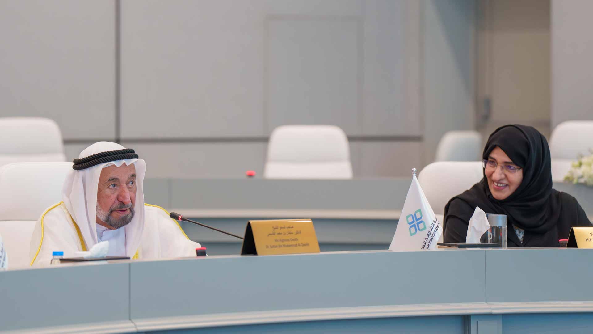 بجانب صاحب السمو حاكم الشارقة، حضر الاجتماع كل من: سعادة الدكتورة محدثة الهاشمي رئيسة أكاديمية الشارقة للتعليم، رئيسة مجلس الأمناء، وسعادة الدكتورة خولة الملا رئيسة هيئة شؤون الأسرة، والدكتورة جنين رومانو المدير التنفيذي لأكاديمية الشارقة للتعليم، والدكتورة نجوى الحوسني عميد كلية التربية بالإنابة في جامعة الإمارات العربية المتحدة، والدكتور بولين تايلور غاي مدير المعهد الأسترالي للبحوث التربوية، والدكتورة كيرستي لونكا أستاذة علم النفس التربوي في جامعة هلسنكي الفنلندية، والدكتور ألكسندرا آلان رئيس كلية الدراسات العليا للتربية بجامعة اكستر، والدكتور راشد أبو شبص مدير إدارة تقنية المعلومات بهيئة الشارقة للتعليم الخاص، والدكتور دراغان جاسيفيتش مدير مركز تحليلات التعلم في جامعة موناش الأسترالية.