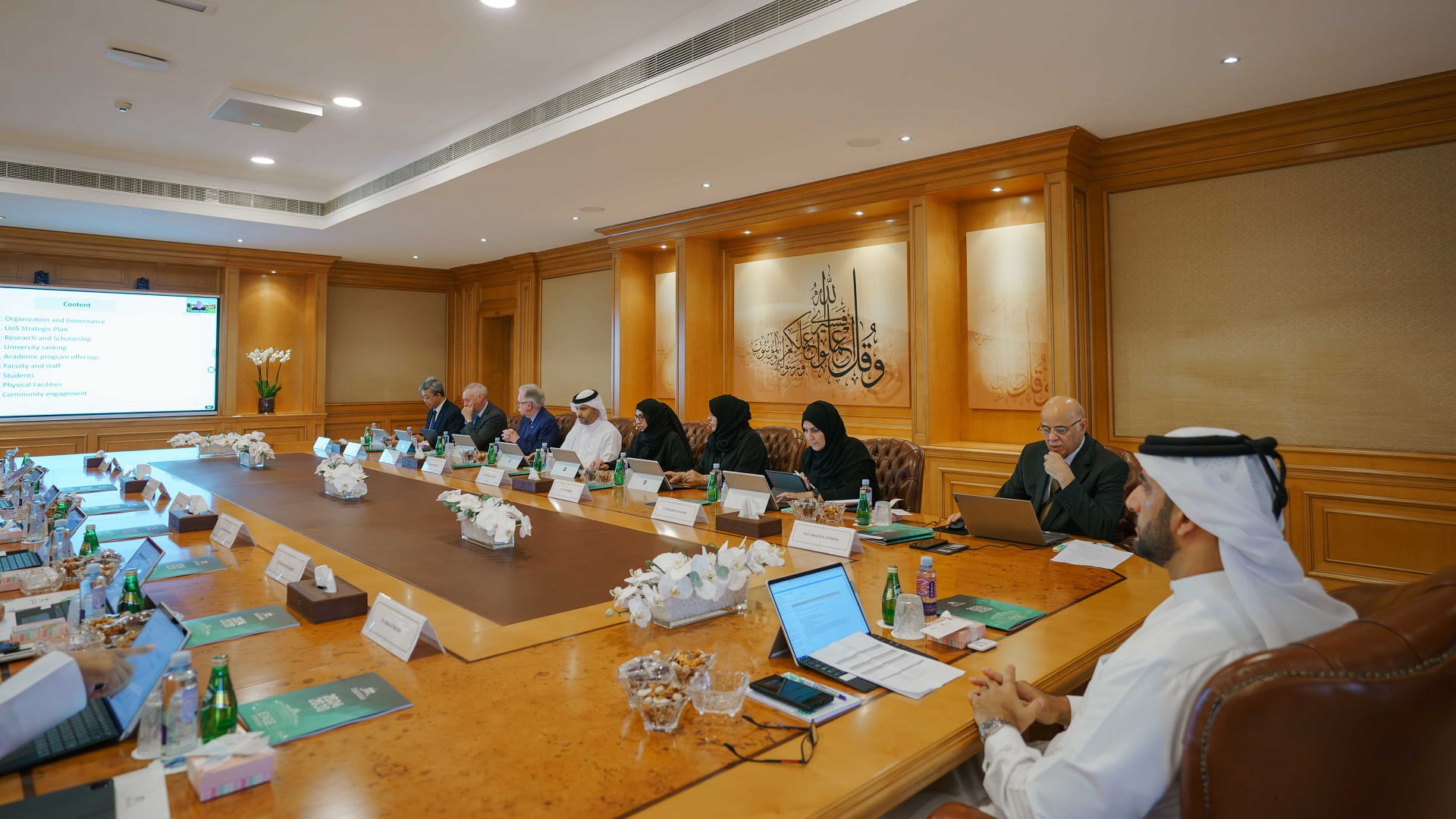 حضر اجتماع مجلس أمناء الجامعة، سعادة كل من عفاف إبراهيم المري رئيسة دائرة الخدمات الاجتماعية، والدكتورة خولة عبد الرحمن الملا رئيسة هيئة شؤون الأسرة، والدكتور منصور محمد بن نصّار رئيس الدائرة القانونية لحكومة الشارقة، والمهندس عمر بن حريمل الشامسي رئيس دائرة الموارد البشرية، وسعيد سلطان بالجيو السويدي رئيس هيئة كهرباء ومياه وغاز الشارقة، والدكتورة محدّثة الهاشمي رئيسة هيئة الشارقة للتعليم الخاص، ومحمد عبد الله الرئيس التنفيذي لمصرف الشارقة الإسلامي، والدكتور حميد مجول النعيمي مدير جامعة الشارقة رئيس الاتحاد العربي لعلوم الفضاء والفلك، والدكتور عبيد بن بطي المهيري العميد التنفيذي السابق للغة العربية والدراسات الإماراتية بكليات التقنية العليا، والدكتور جاك فيرمونت رئيس جامعة أوتاوا في كندا، والدكتور ألكساندر كوليشوف رئيس معهد سكولكوف للعلوم والتكنولوجيا في روسيا، والدكتور محمد حمدي بن عبد الشكور مدير جامعة مالايا في ماليزيا، والدكتور باول أوبرن نائب رئيس جامعة ماك ماستر الكندية، والدكتور مارتن بيستارو مساعد نائب مدير جامعة ليستر للمشاريع العلمية الاستراتيجية مدير معهد ليستر لرصد الفضاء والأرض في بريطانيا، والدكتور كمال يوسف التومي أستاذ الهندسة الميكانيكية والمدير المشارك لمركز المياه النقية والطاقة النظيفة في معهد ماساتشوستس للتكنولوجيا في الولايات المتحدة الأميركية، والدكتور أسامة الخطيب أستاذ علوم الحاسوب والهندسة الكهربائية ومدير مركز ستانفورد للروبوتات في جامعة ستانفورد في الولايات المتحدة.