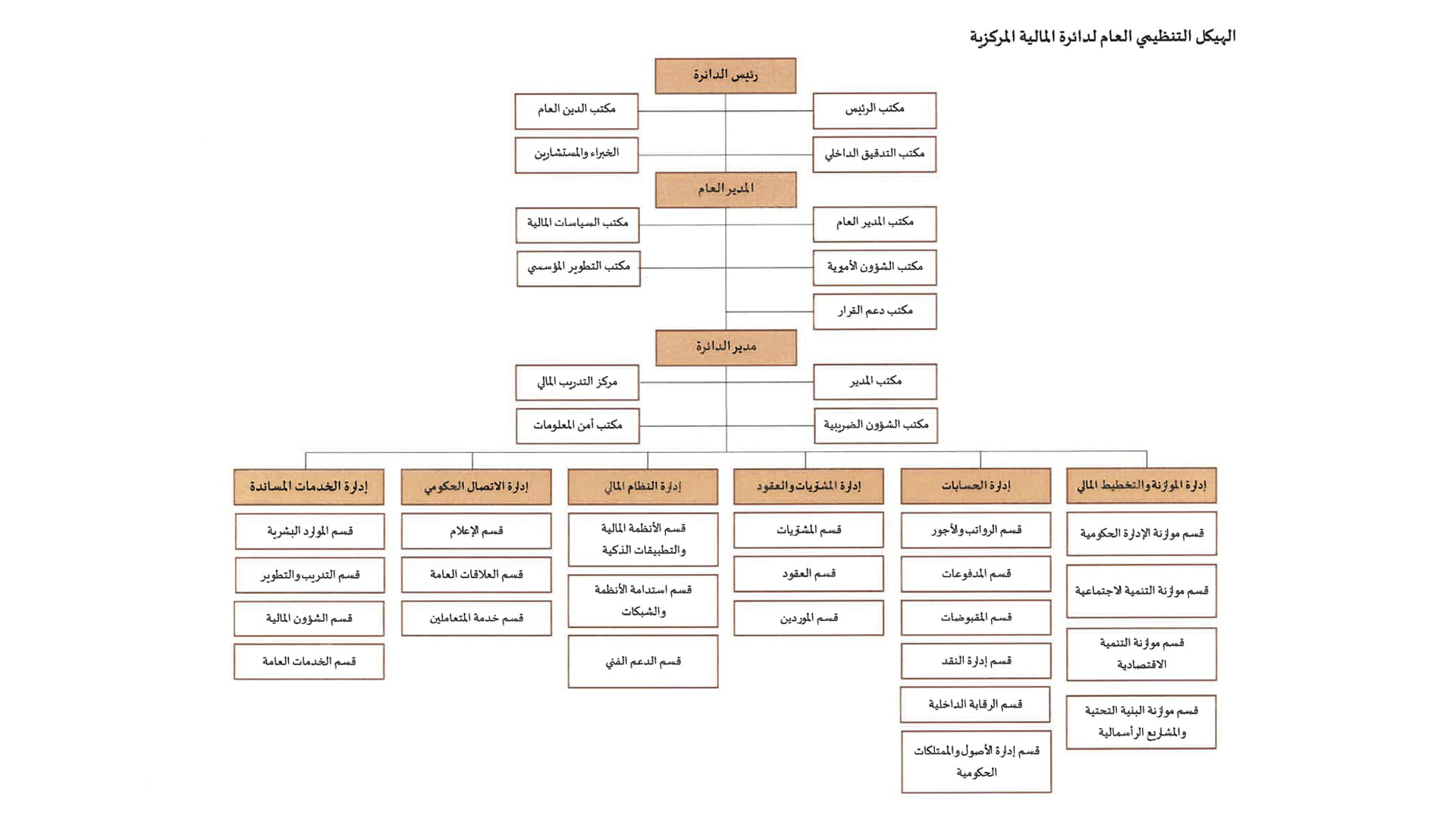 ونص المرسوم على أن يُعتمد الهيكل التنظيمي العام لدائرة المالية المركزية في إمارة الشارقة المرفق بهذا المرسوم، على أن يُصدر المجلس التنفيذي بقراراتٍ منه ما يلي: الهيكل التنظيمي التفصيلي للدائرة، والقرارات اللازمة لتنفيذ هذا المرسوم بما في ذلك اعتماد التوصيف الوظيفي لمهام الوحدات التنظيمية في الدائرة بما يتفق واختصاصاته، واستحداث أو دمج أو إلغاء أية وحدات تنظيمية تتبع الإدارات المُدرجة ضمن الهيكل التنظيمي العام.