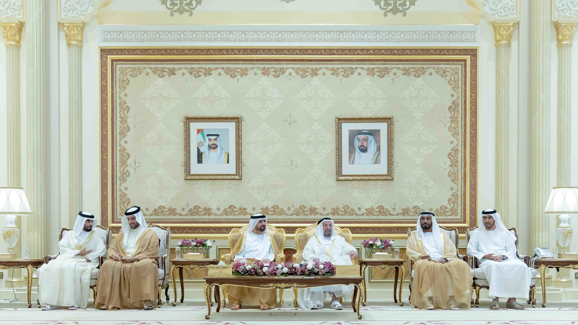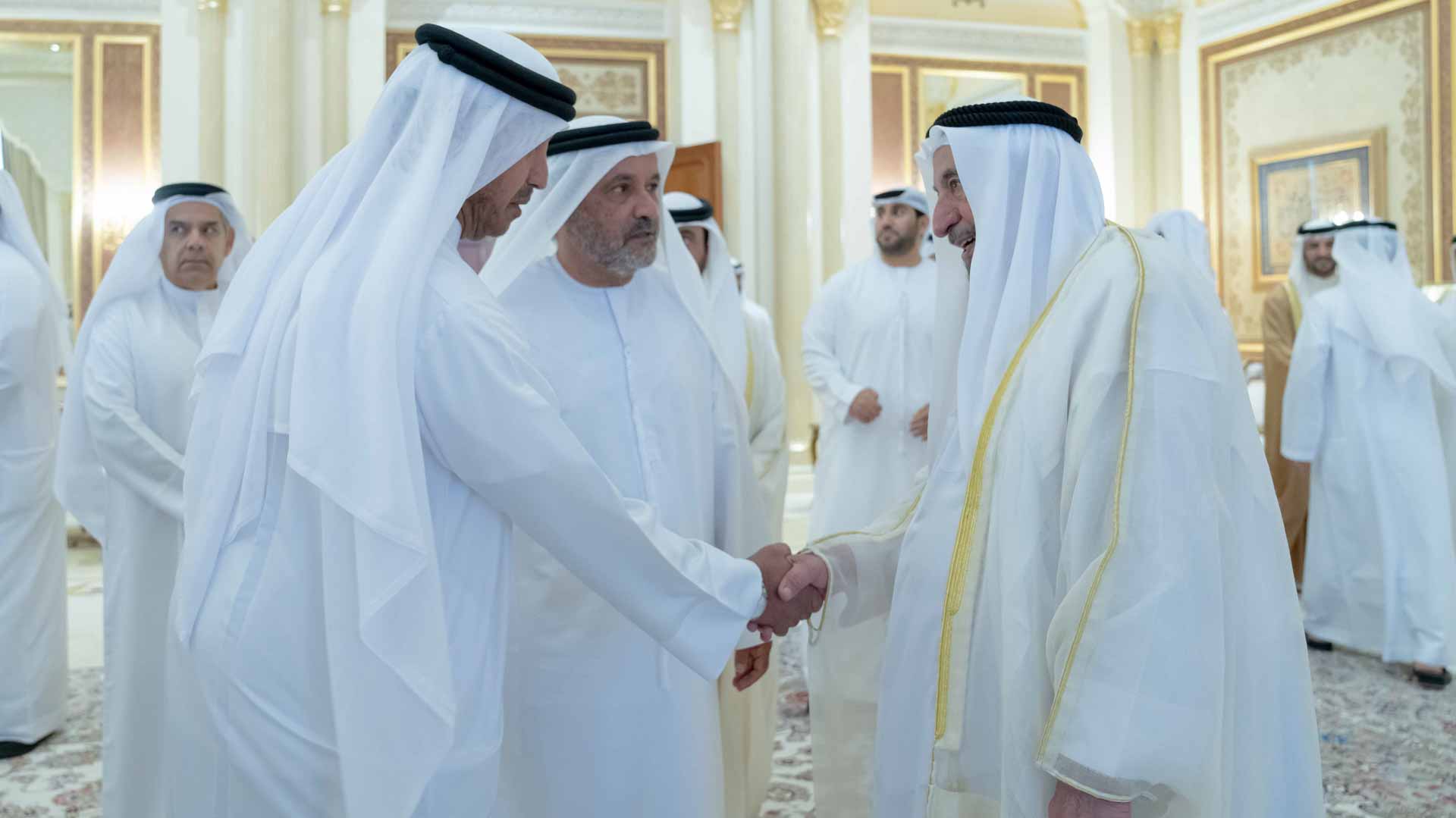 وحضر الاستقبال كل من الشيخ خالد بن عبد الله القاسمي رئيس هيئة الشارقة للموانئ والجمارك والمناطق الحرة، والشيخ خالد بن عصام القاسمي رئيس دائرة الطيران المدني، والشيخ محمد بن حميد القاسمي رئيس دائرة الإحصاء والتنمية المجتمعية، والشيخ محمد بن صقر القاسمي رئيس هيئة تطوير معايير العمل، والشيخ سعود بن سلطان بن محمد القاسمي مدير عام هيئة الشارقة الرقمية، والشيخ سعود بن محمد بن سعود القاسمي الرئيس التنفيذي لقطاع العقارات في الشارقة لإدارة الأصول، وسعادة راشد أحمد بن الشيخ رئيس الديوان الأميري، ورؤساء الدوائر والمؤسسات الحكومية.