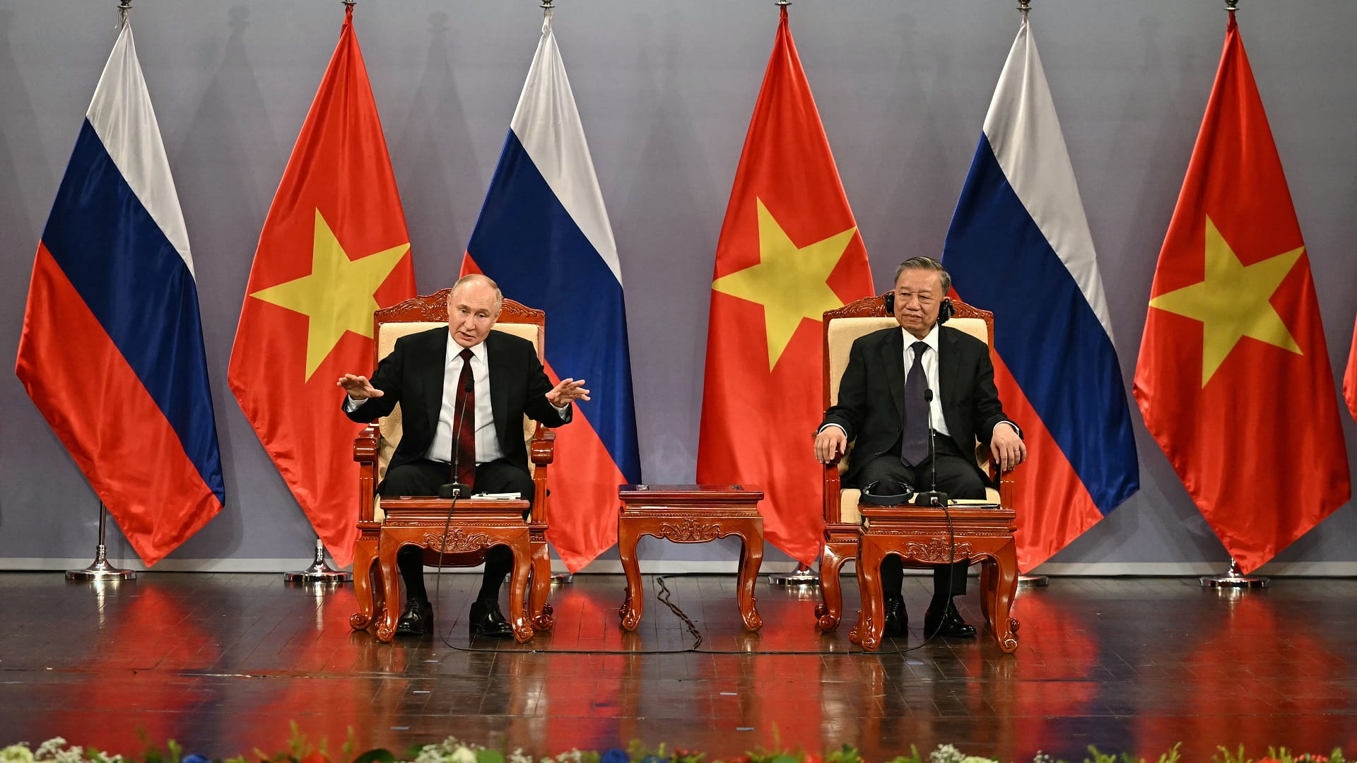 ونقلت وسائل إعلام روسية عن بوتين قوله: نحن ملتزمون بشدة بتعزيز الشراكة الاستراتيجية الشاملة مع فيتنام، والتي تظل من بين أولويات السياسة الخارجية الروسية.