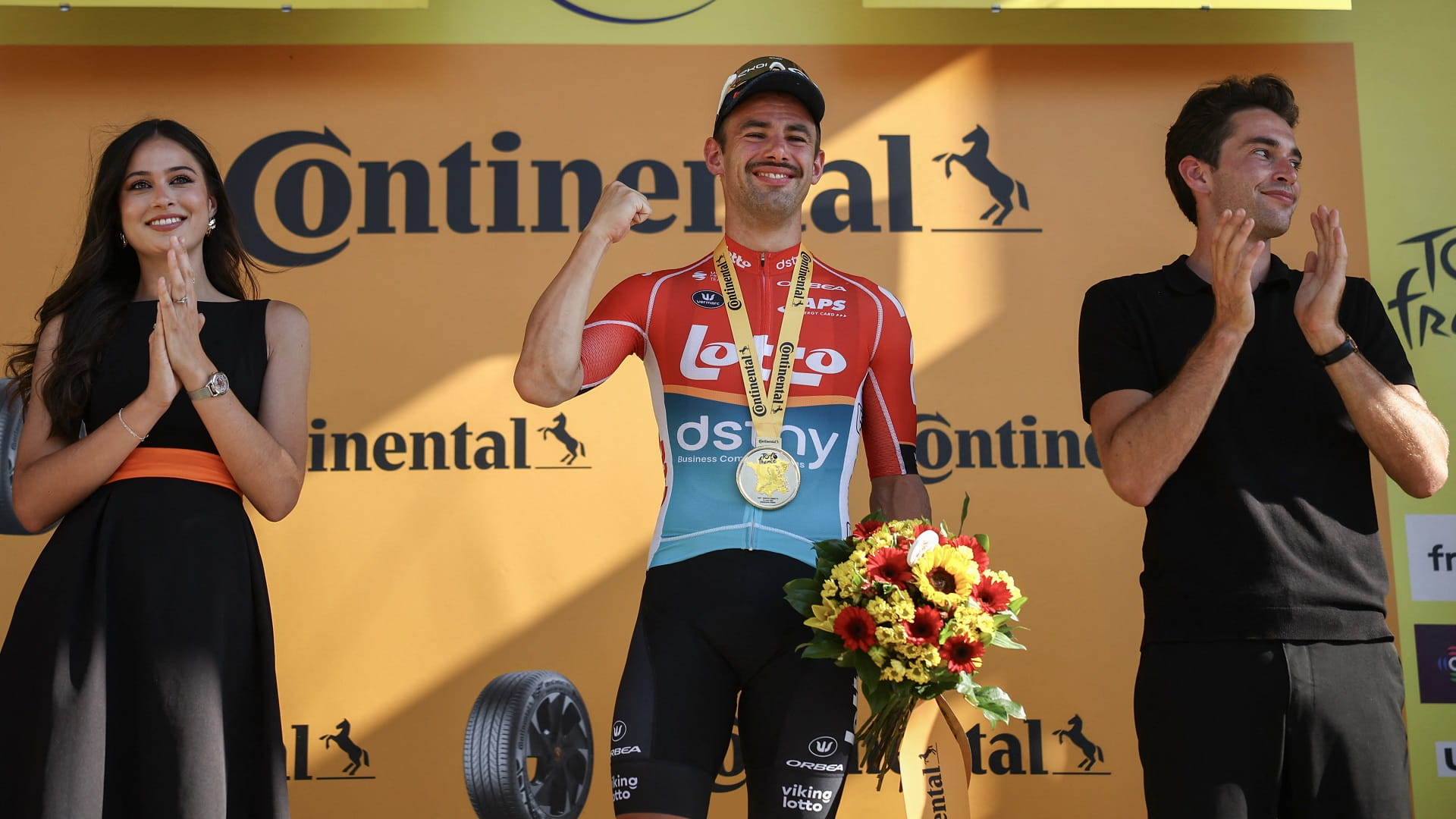 وابتعد البلجيكي، البالغ 32 عاماً، عن مجموعة ضمت 36 دراجاً قبل 30 كلم من خط نهاية هذه المرحلة التي تعتبر من الأجمل في هذه النسخة، حيث تمر عبر البحيرات والجبال، وذلك بصحبة الفرنسي ماتيو فيرشيه، والبولندي ميخال كفياتكوفسكي اللذين حلا خلفه توالياً بفارق السرعة النهائية.