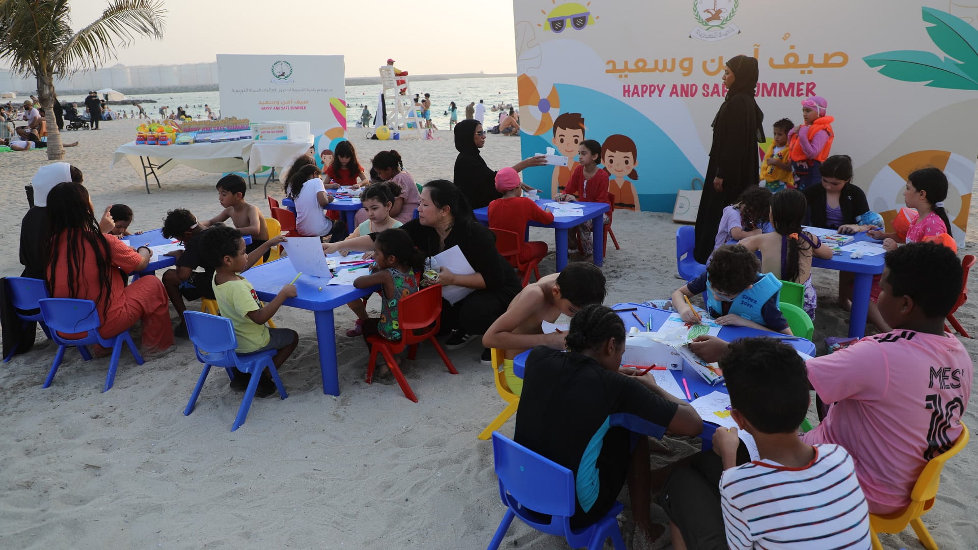 وأفاد مشرفي الحملة الأسبوعية "صيف آمن وسعيد"، بأنه جرى تنظيم العديد من الفعاليات المخصصة للأطفال، شملت مسابقات تحفيزية وأنشطة ترفيهية وبرامج تنافسية بالألعاب الورقية المصنوعة من مواد صديقة بالبيئة، والتي هدفت إلى تطوير المهارات الدقيقة لدى الأطفال، وتعزيز المهارات الاجتماعية لديهم، وتحفيزهم على الإبداع والابتكار وتعريفهم بأهمية اتباع إرشادات السلامة الشاطئية، خلال تواجدهم مع العائلة.