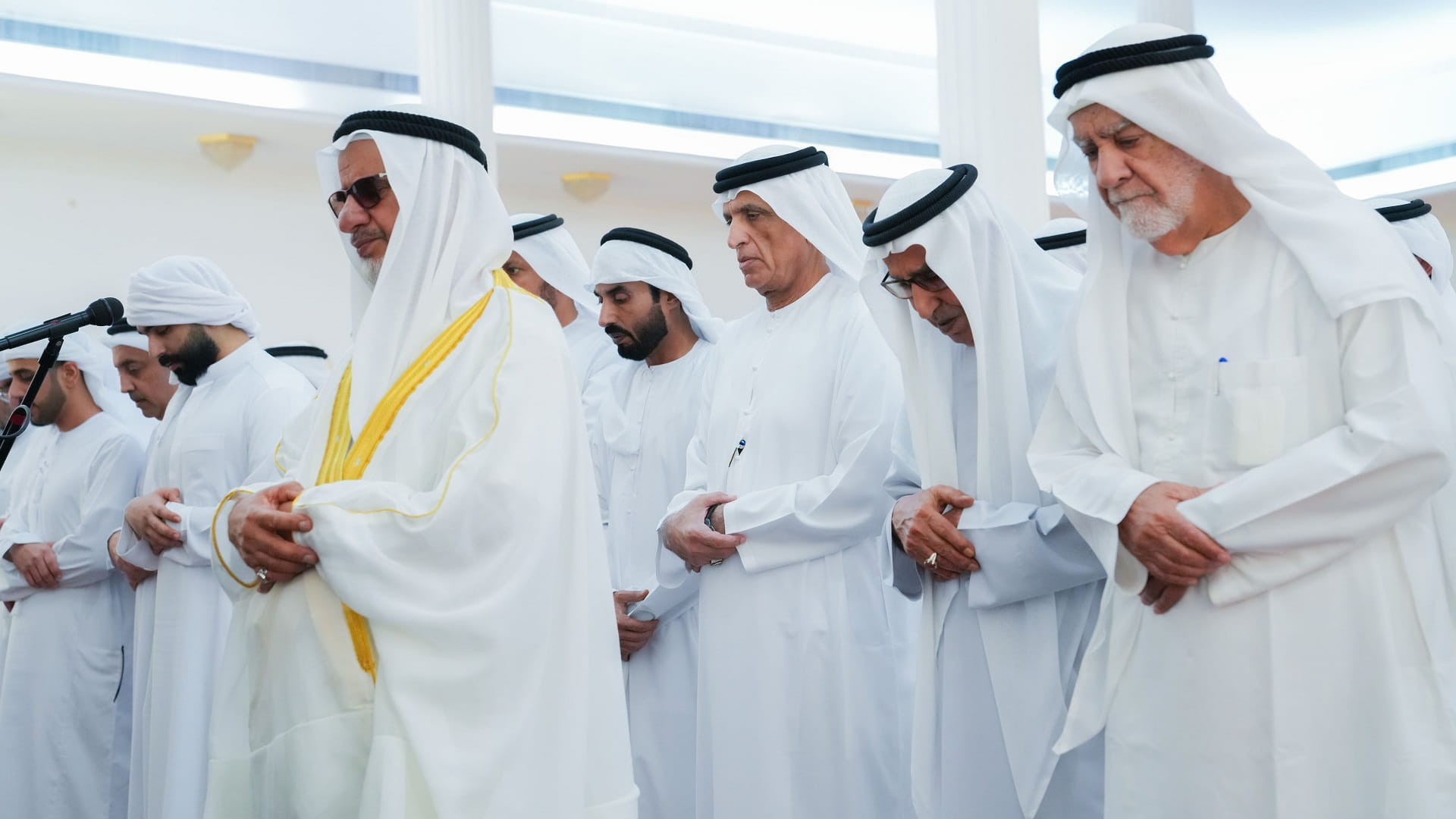 وأدى الصلاة إلى جانب صاحب السمو حاكم رأس الخيمة، عدد من الشيوخ، وجموع المصلين.
